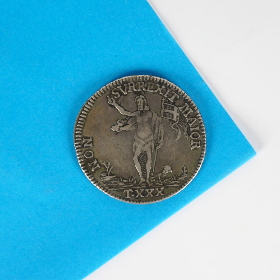 MALTE - Manoel Pinto da Fonseca - Ordre de Saint Jean de Jérusalem : 30 TARI 1768 en argent : A/ F.EMMANUEL PIN TOM.M.M.H.S.S.1768 au centre armoiries couronné, R/ NON SURREXIT MAIOR T.XXX au centre Jean Le Baptiste, Poids brut : 29,49 g environ.