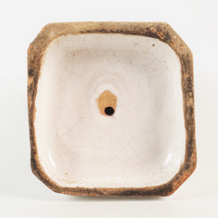 MANUFACTURE MENARD - Rennes : Statuette "Sainte-Marie" en faïence émaillée polychrome et craquelée, milieu du 19e siècle, H. 28 cm.