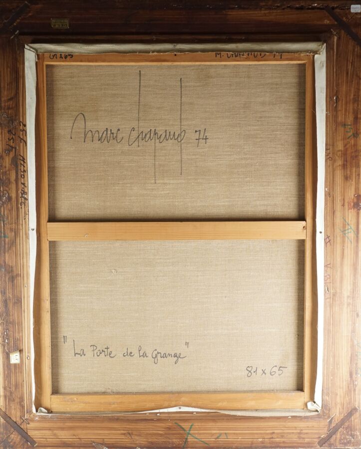 Marc CHAPAUD (1941), "La porte de la grange" 74, huile sur toile signée en bas, titrée et datée au dos, 81 x 65 cm.