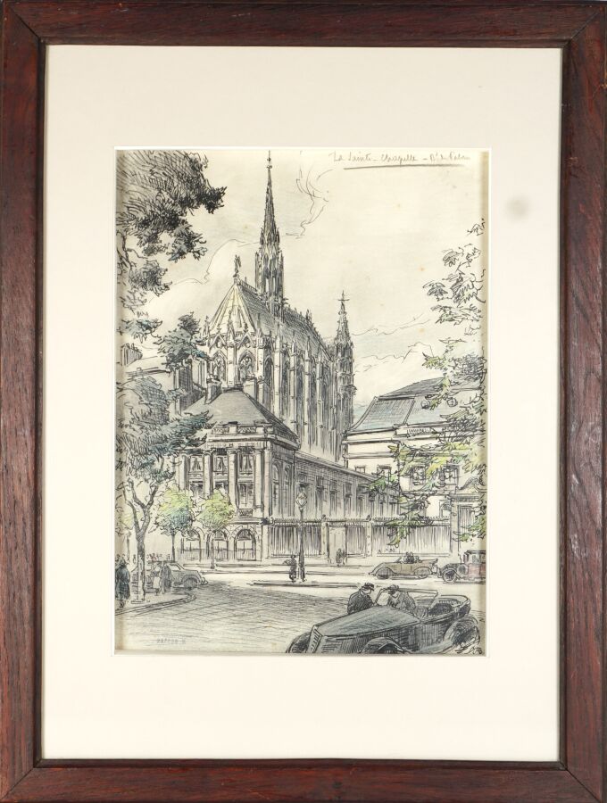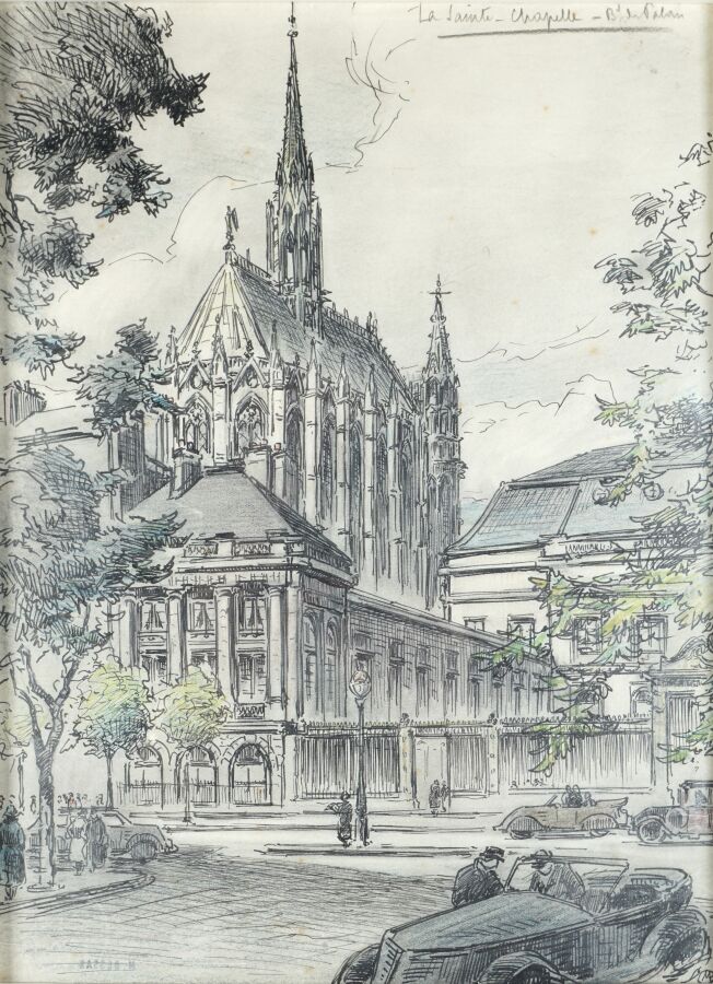 Marcel BESSAN (1887-1961), "La Sainte Chapelle", gravure avec rehauts d'aquarelle, monogrammée dans la planche en bas à droite, 31 x 23 cm (à vue).