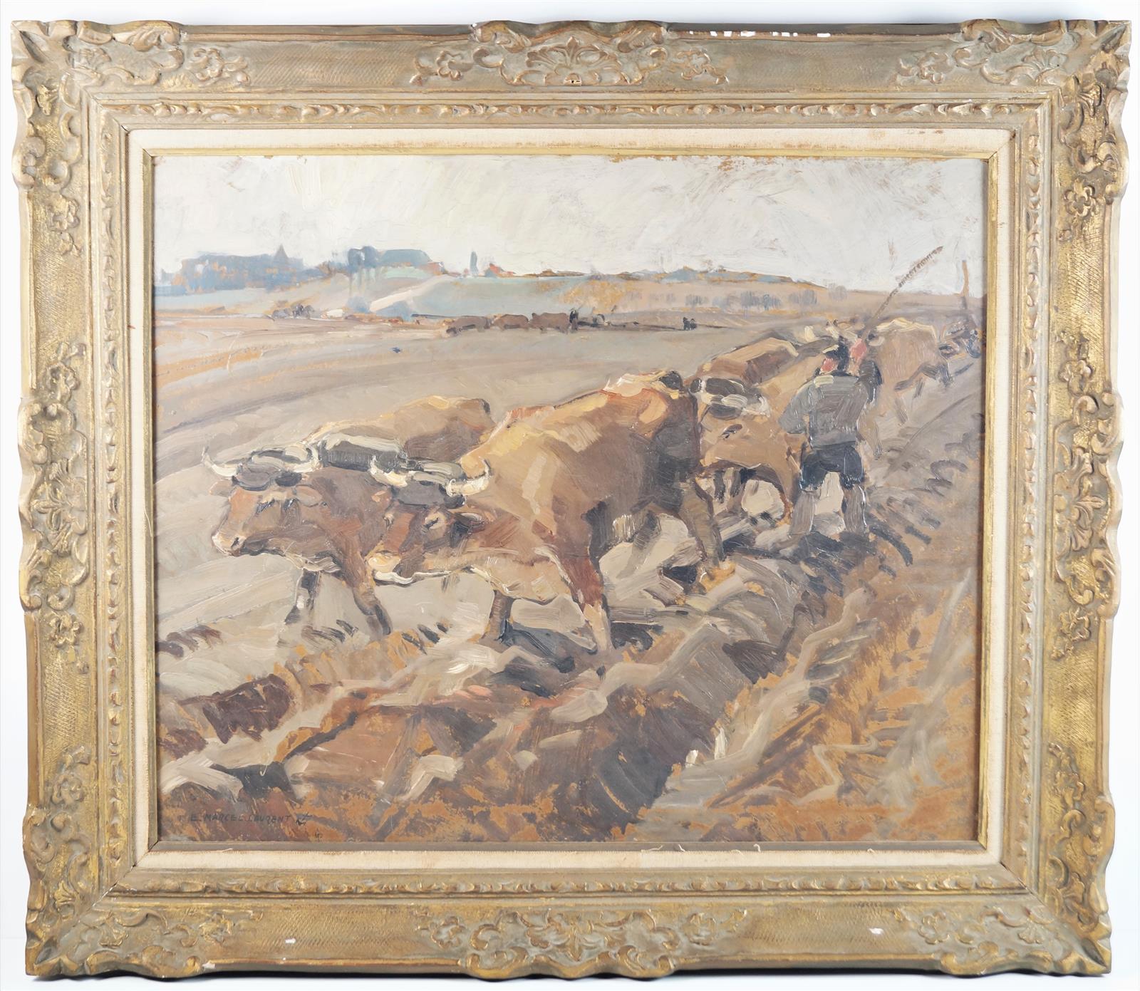 Marcel LAURENT (1892-1948 - Peintre officiel de la Marine), "Les labours", huile sur panneau signée en bas à gauche, 52 x 65 cm.