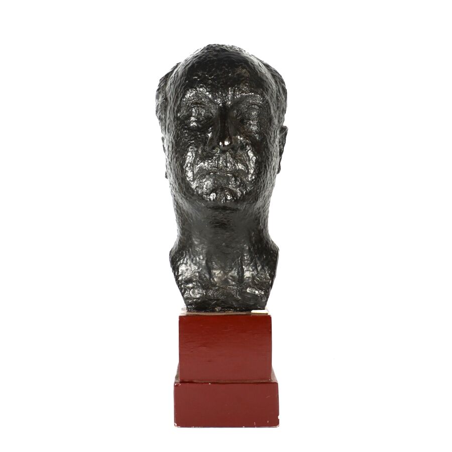 Marguerite COUSINET (1886- 1970), "Portrait de Pierre Benoit", sculpture en bronze à patine brune, signée en creux à l'arrière, présentée sur un socle, H. Totale : 52 cm (petits manques au socle).