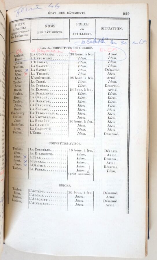 [MARINE] - État du personnel de la marine et des colonies au 1er janvier 1742 - Paris ; Imprimerie Royale, 1762 - 1 volume In-8° - Des annotations manuscrites additives postérieures à quelques pages - Reliure XXe siècle demi-chagrin marine - 1ère couverture conservée - Dos à nerfs titré or.