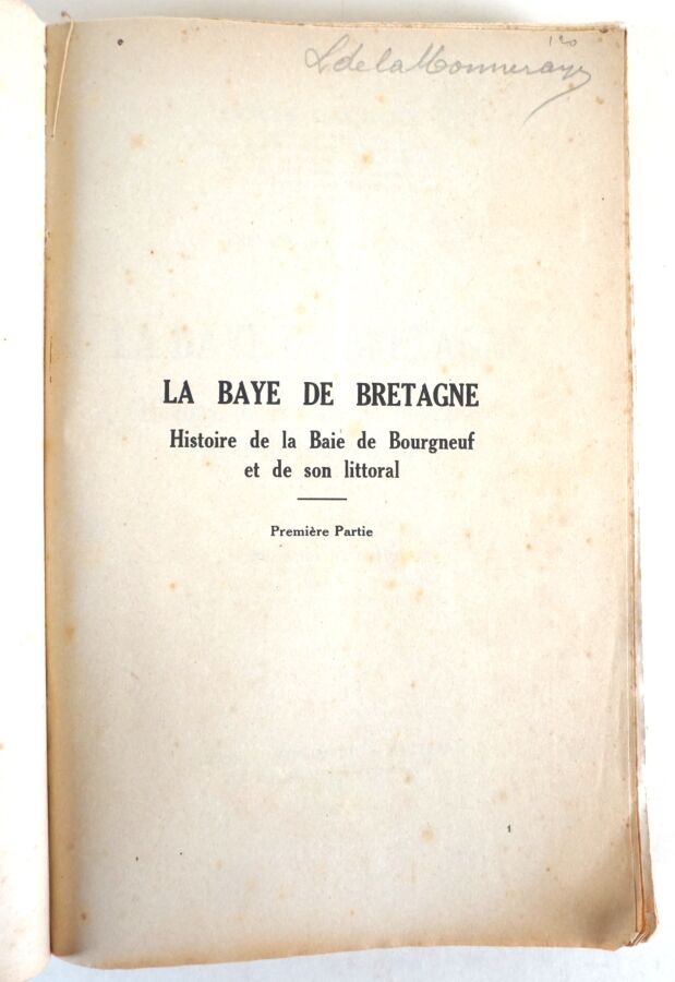 [MARINE] - LACROIX (Louis) - La Baye de Bretagne. Histoire de la Baie de Bourgneuf et de son littoral - Luçon ; Imprimerie S. Pacteau, 1942 - 1 volume In-8° broché sous couverture illustrée couleurs au 1er plat (quelque peu roussie) - Des planches en noir hors texte, 4 cartes dépliantes in fine - Édition originale enrichie d'1 carte autographe signée de Louis Lacroix le figurant sur le bateau Babin-Chevaye en 1908 au recto.