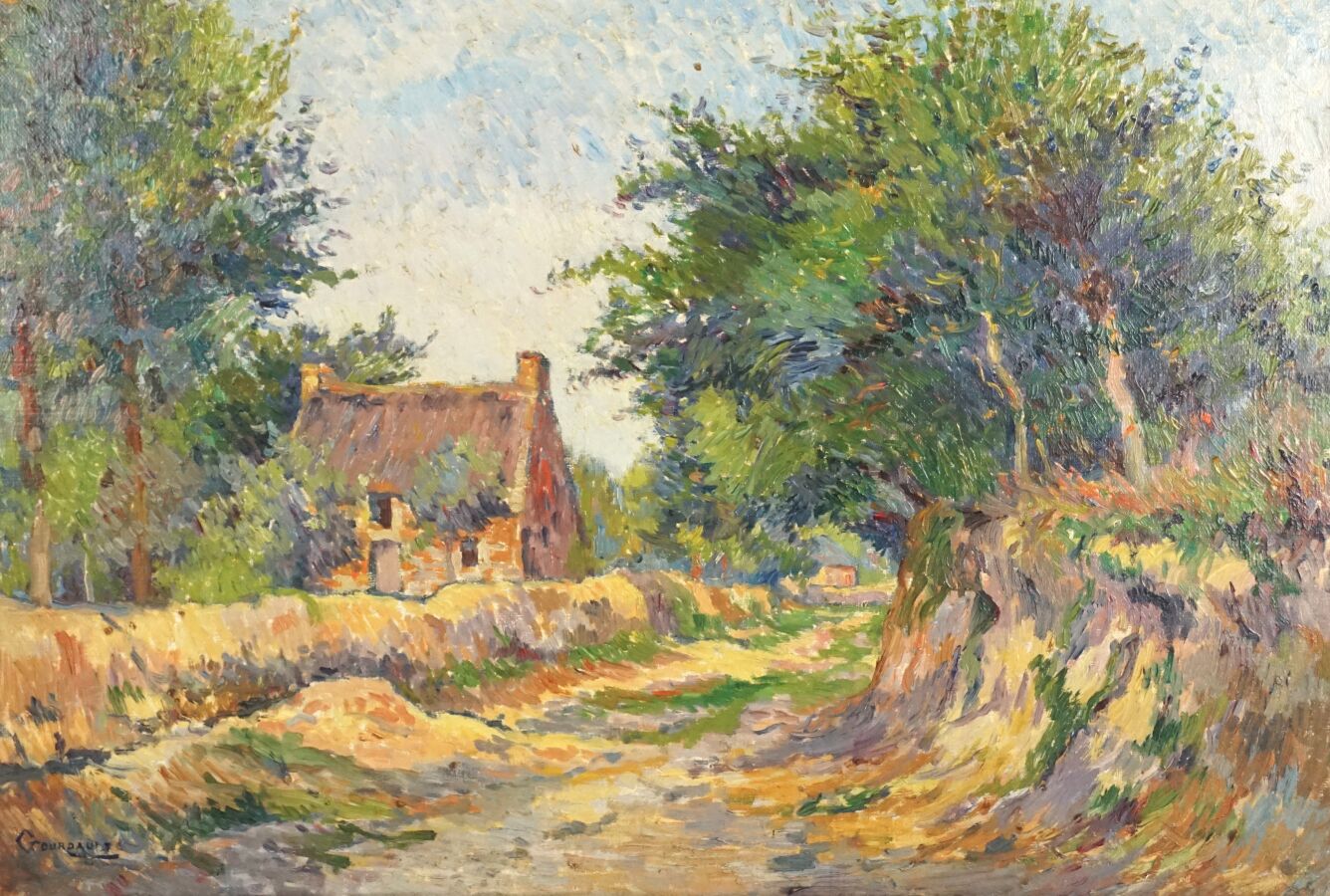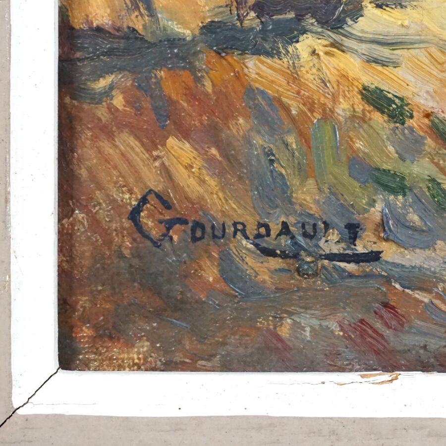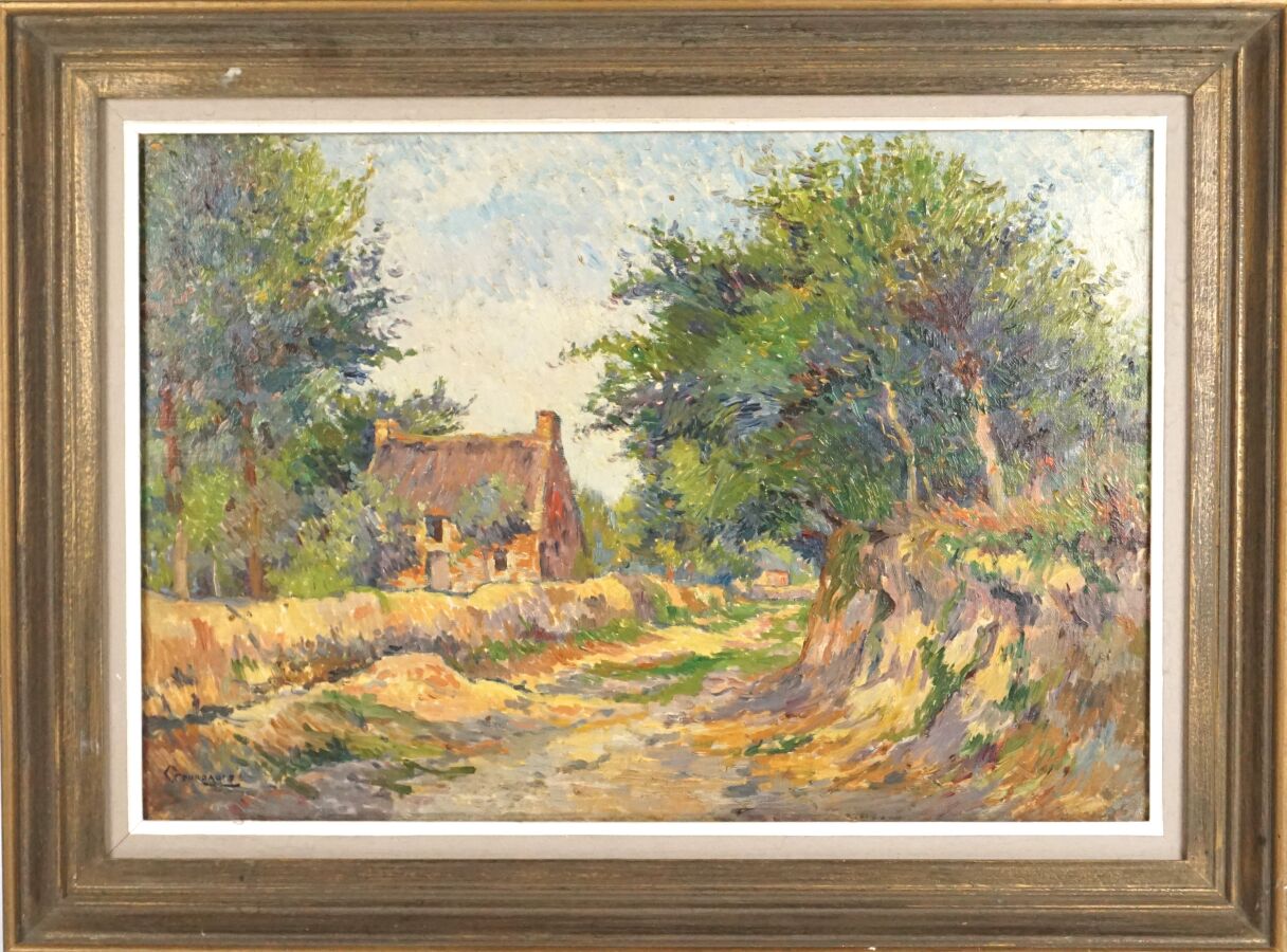 Marius GOURDAULT (1859-1935), "Chaumière à Doëlan", huile sur toile signée en bas à gauche, 38 x 54.8 cm.