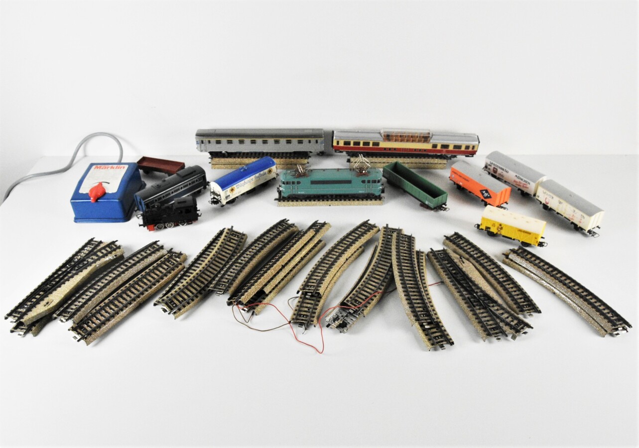 MÄRKLIN : Ensemble de locomotives et nombreux wagons avec un transformateur, un ensemble de rails (dans deux boites, petites usures).