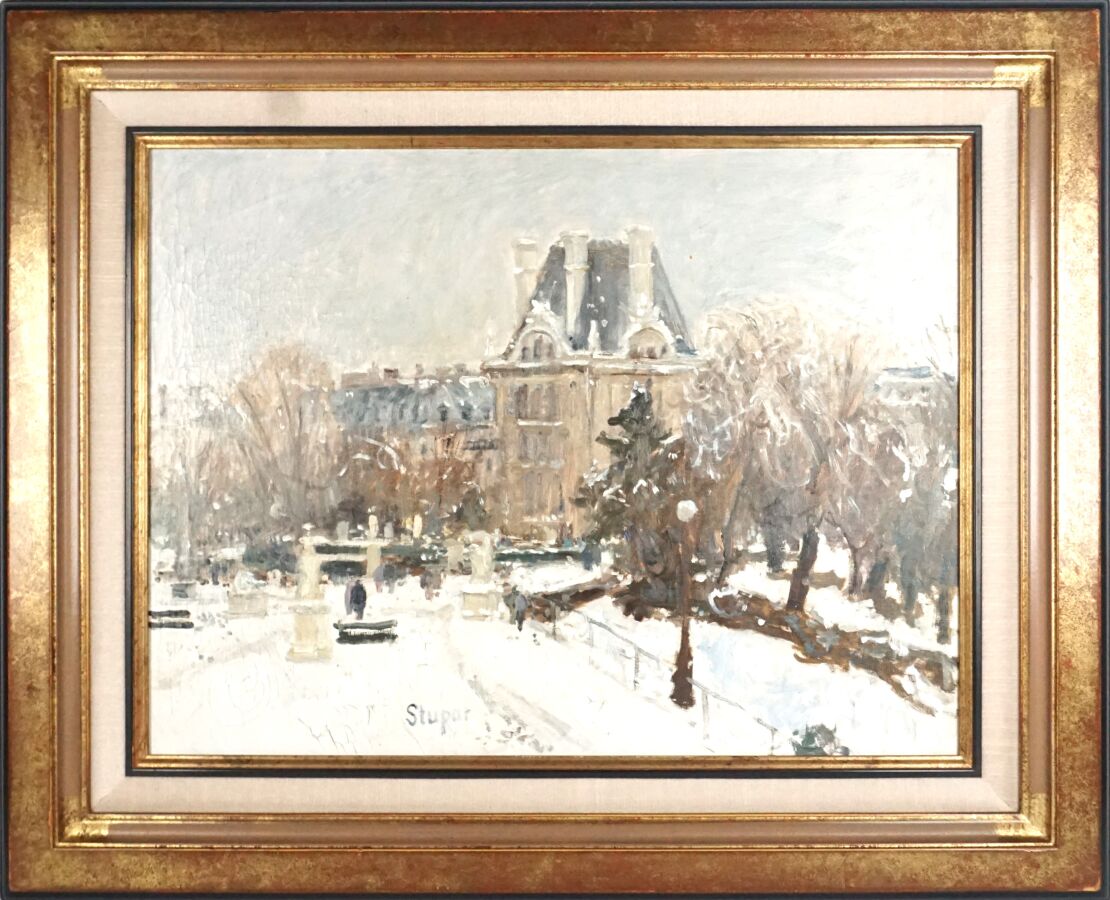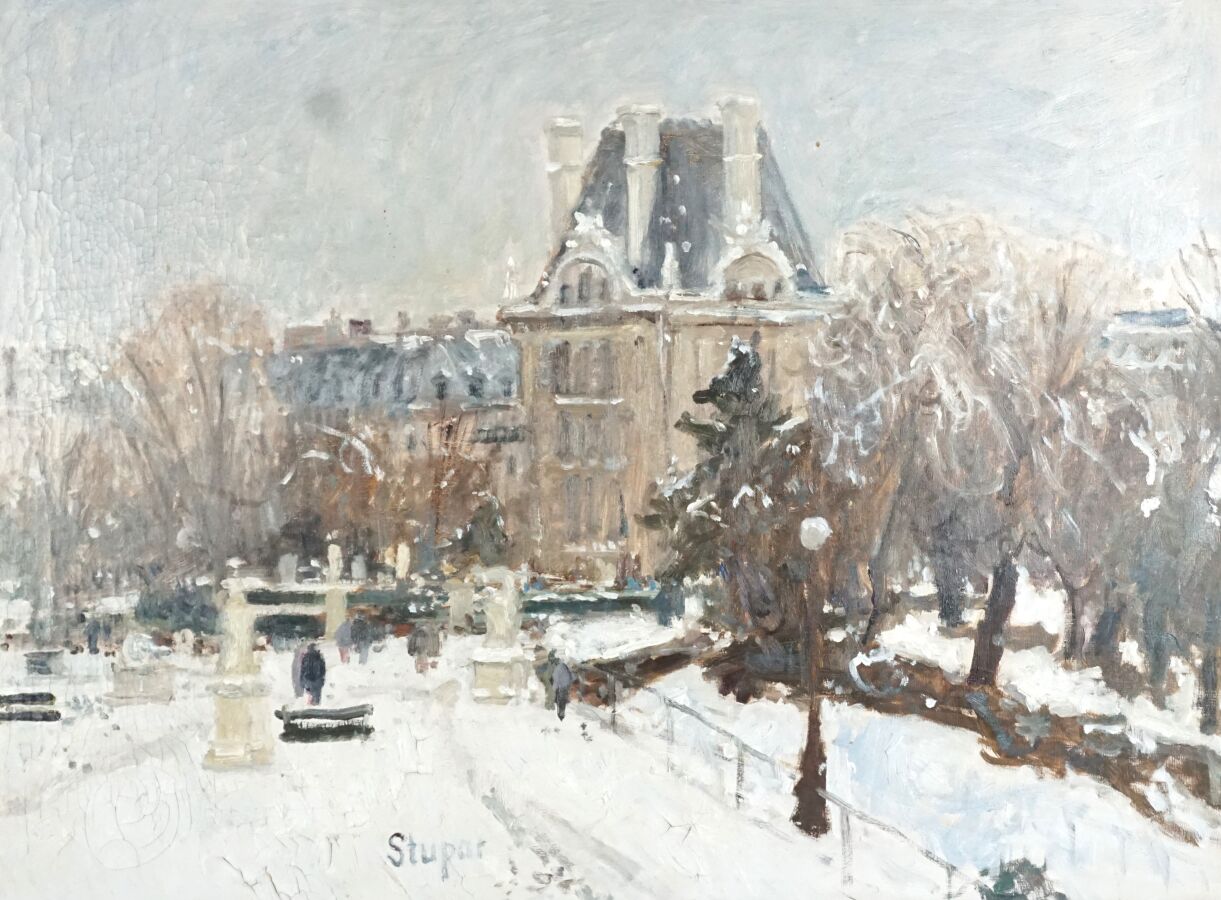 Marko STUPAR (1936 - 2021), " La ville sous la neige ", huile sur toile, signée en bas à gauche, 47 x 61 cm.