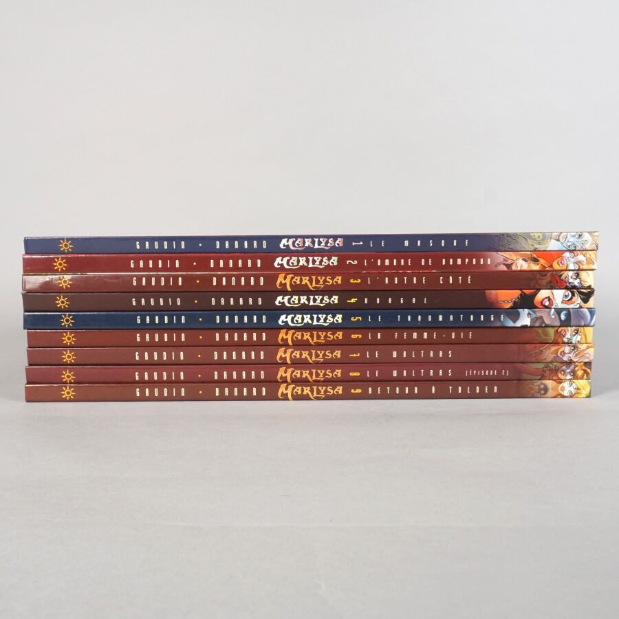 MARLYSA, éd. SOLEIL : Ensemble de 9 albums comprenant les tomes 1 à 9, les tomes 3 et 4 avec un ex-libris signé DANARD, le tome 6 en édition timbrée, numéroté 107/200 et signé par DANARD.