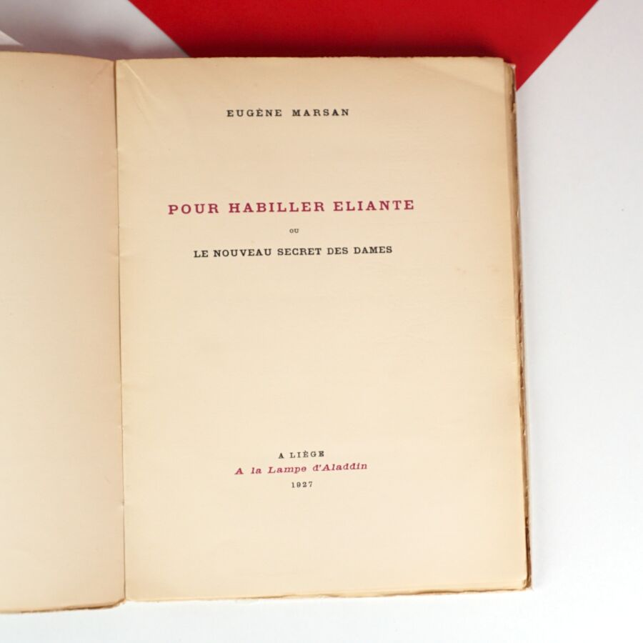 MARSAN (Eugène). Pour habiller Eliante ou le nouveau secret des dames. Liège, À la lampe d'Aladdin, 1927. In-8 broché, couverture imprimée rempliée.