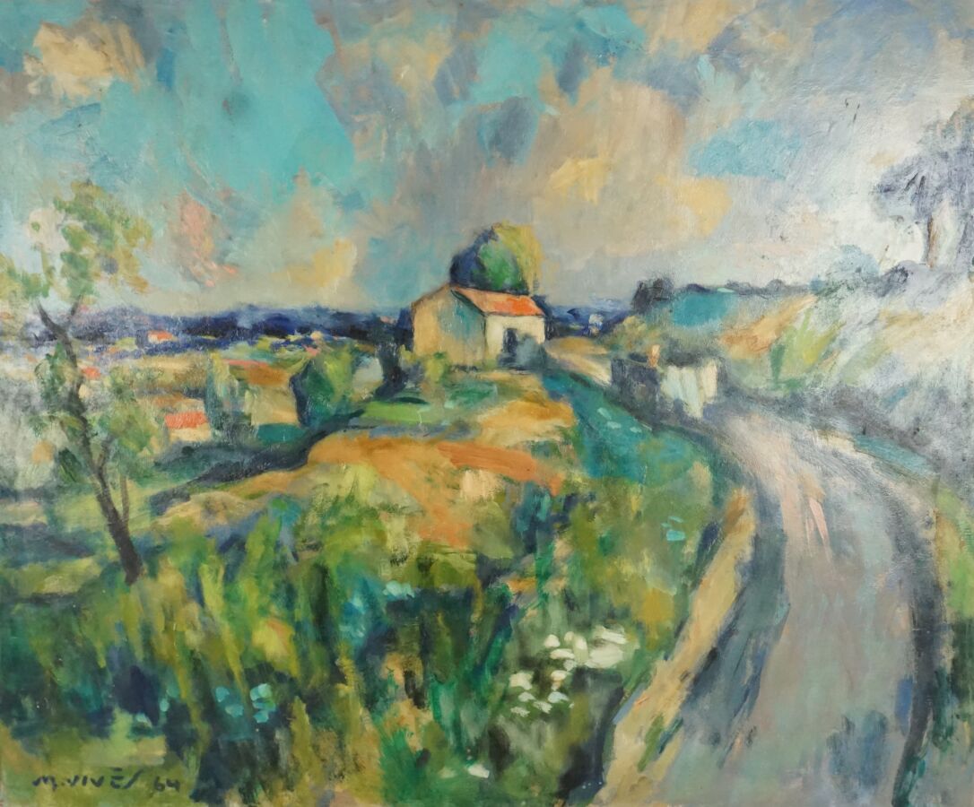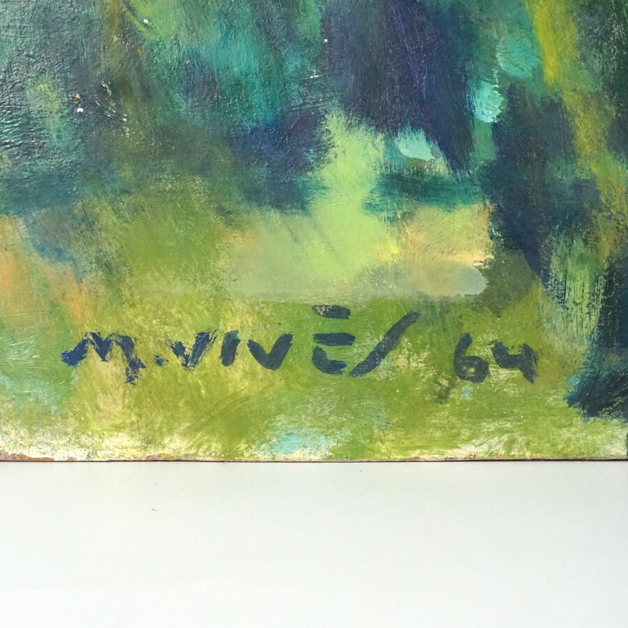 Martin VIVES (1905 - 1991), "Printemps à Latour de France" 1964, huile sur panneau signée et datée en bas à gauche, 60 x 72 cm.