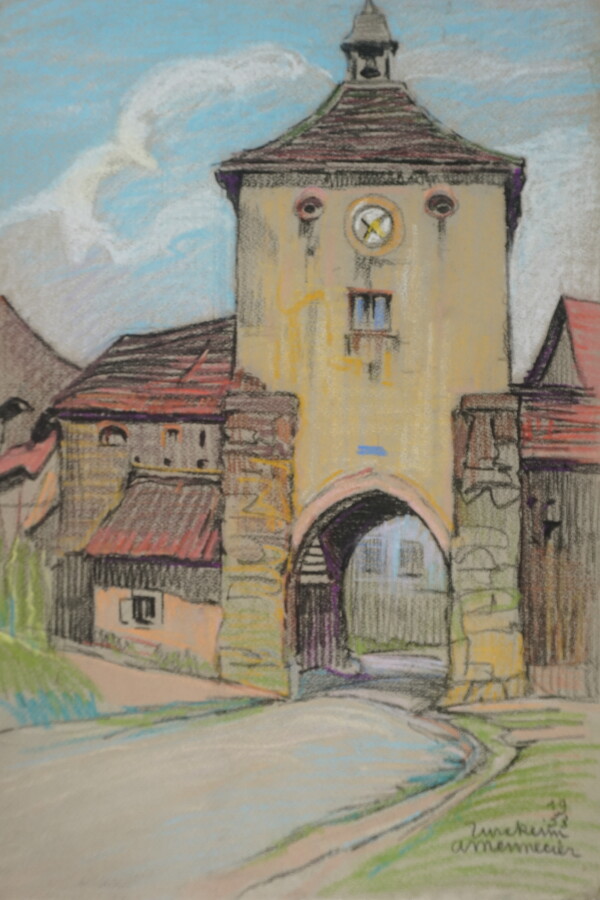 Mary Antoinette AMENNECIER (1888-1960) : Ensemble de pastels et aquarelles sur papier comprenant : "15 septembre 1932", 21 x 27 cm ; "Turckeim" 1938, 40 x 28,5 cm ; "Bellac", 31 x 41,5 cm ; "Près de La Capula", 32 x 48 cm ; "Bellac", 31,5 x 41,5 cm.