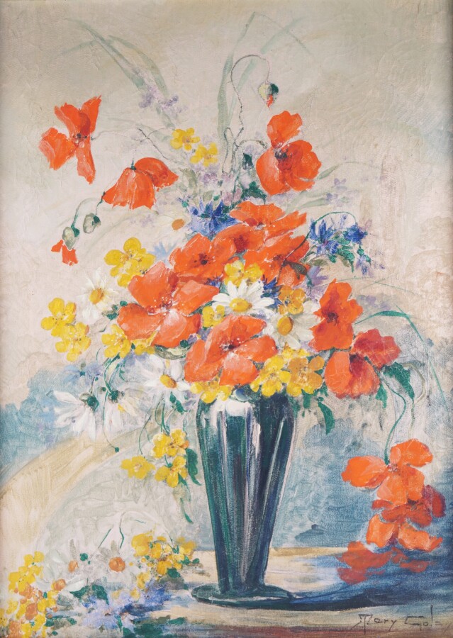Mary GOLAY (1869-1944), "Les pavots des champs", huile sur toile signée en bas à droite, titrée et contresignée au dos, 73 x 54 cm.