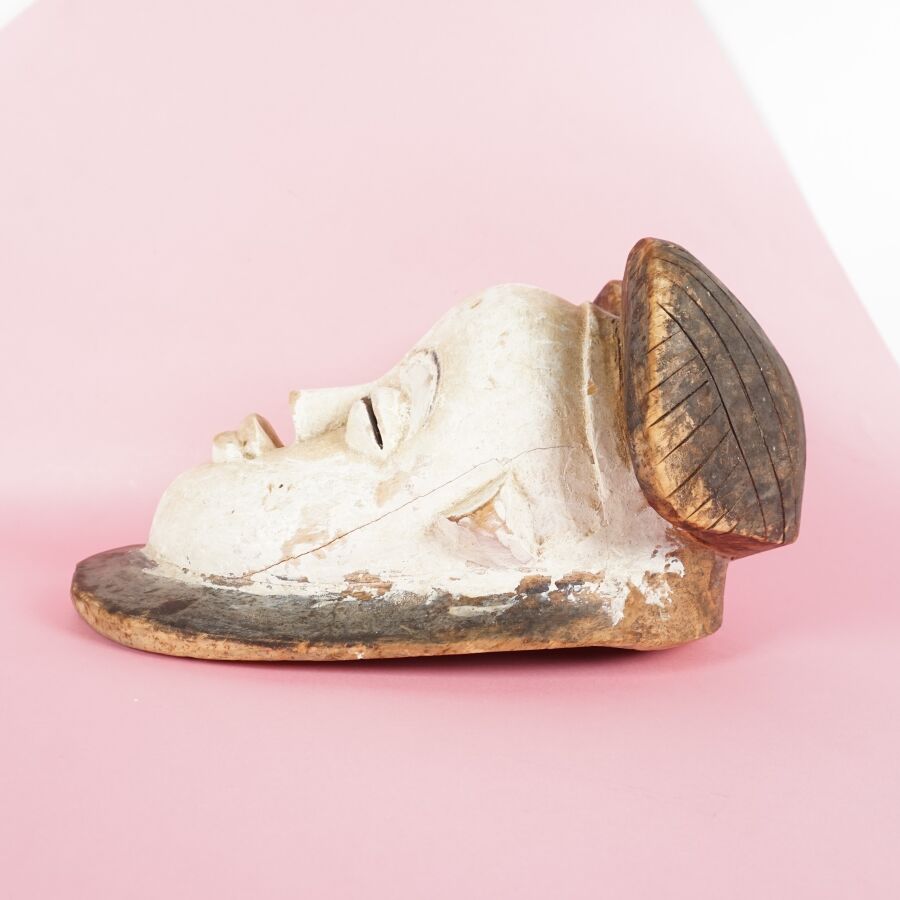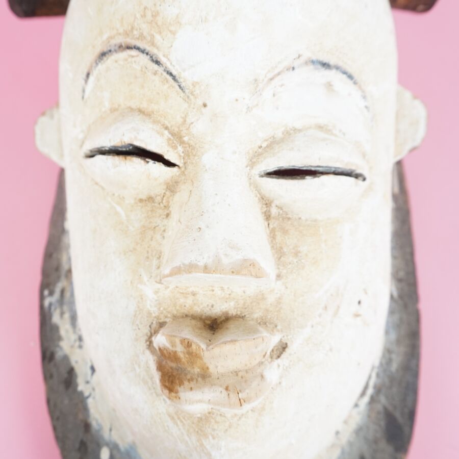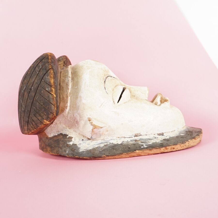 Masque de style Punu figurant une femme en bois peint, Afrique, travail décoratif, H. 30 cm.