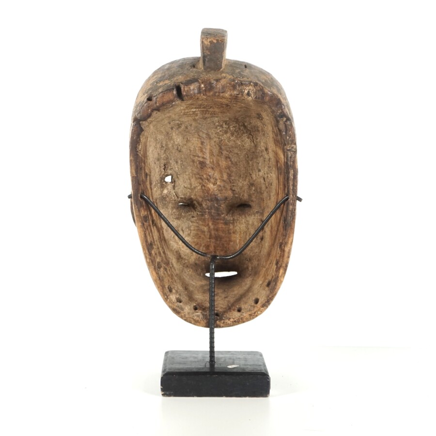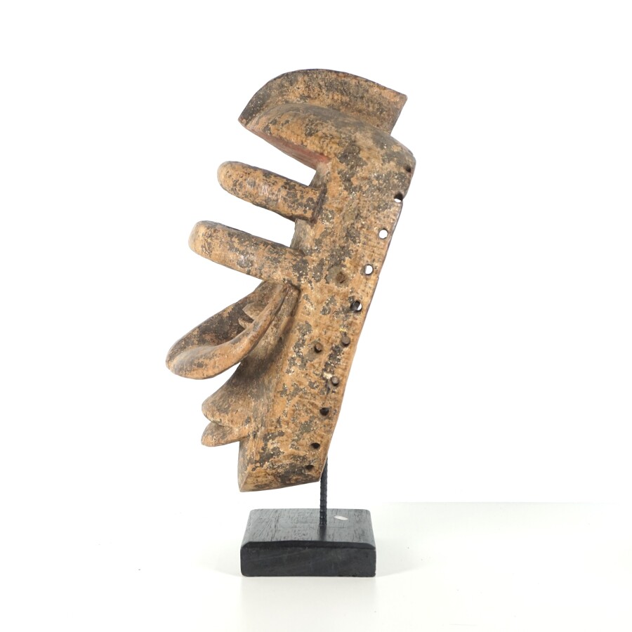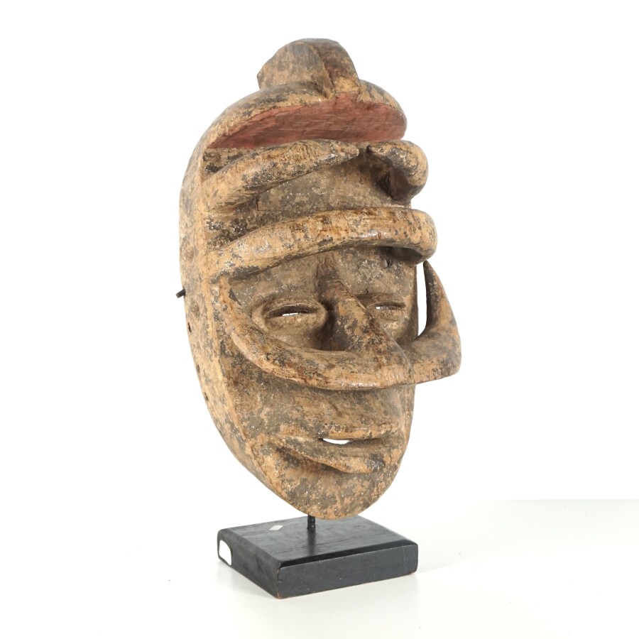 Masque de style Wobé, bois sculpté, Côte d'Ivoire, travail décoratif moderne, présenté sur un socle, H. Totale : 47 cm.