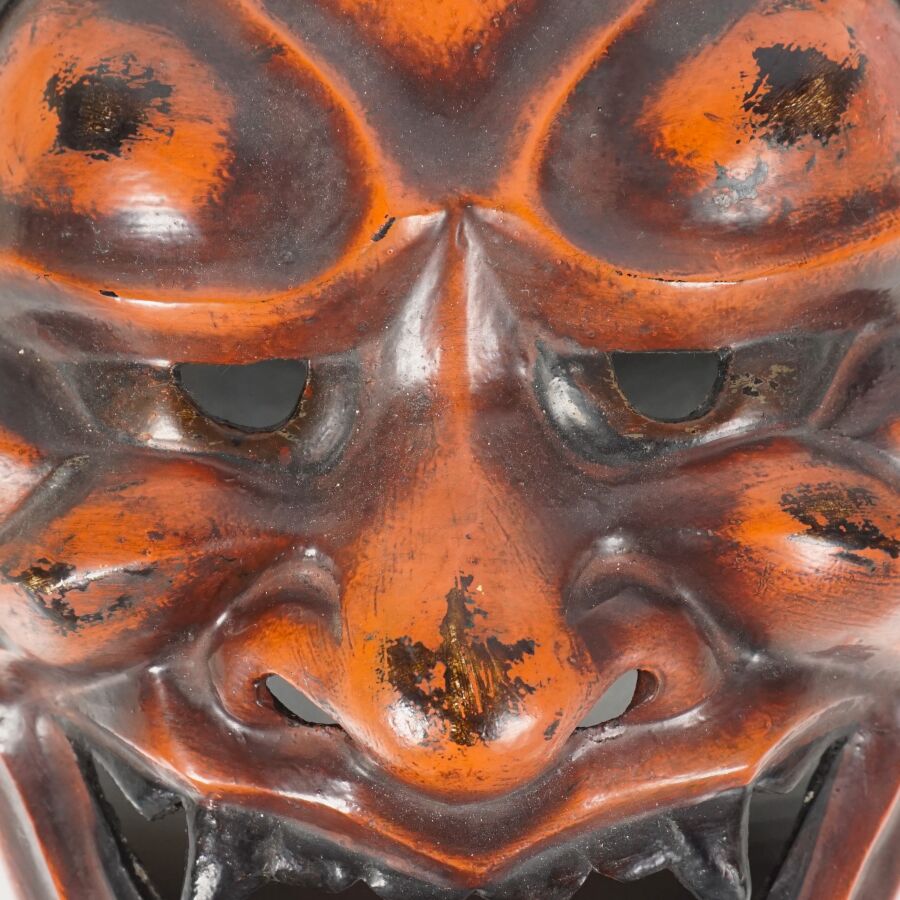 Masque en résine moulée figurant Anya, Japon, H. 38 cm.