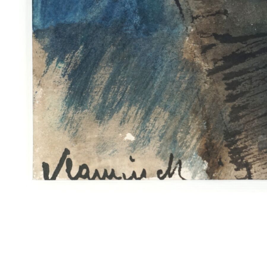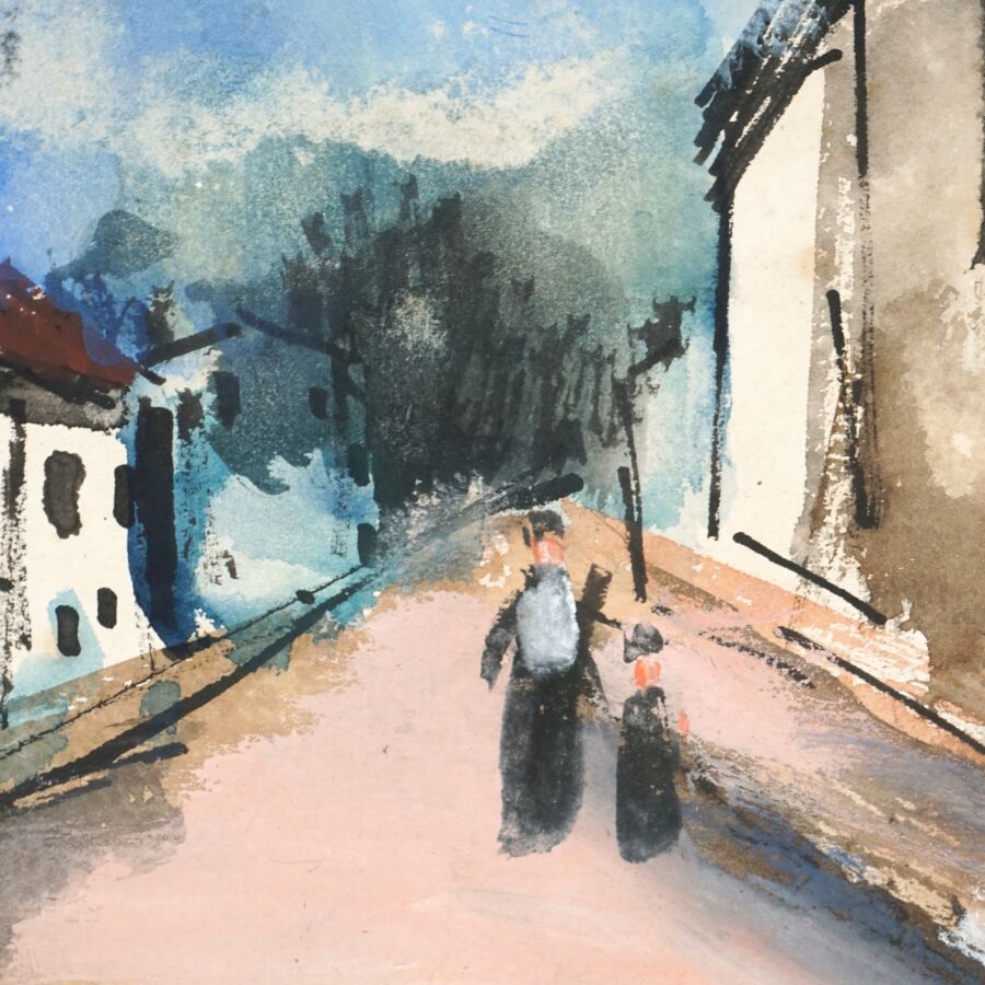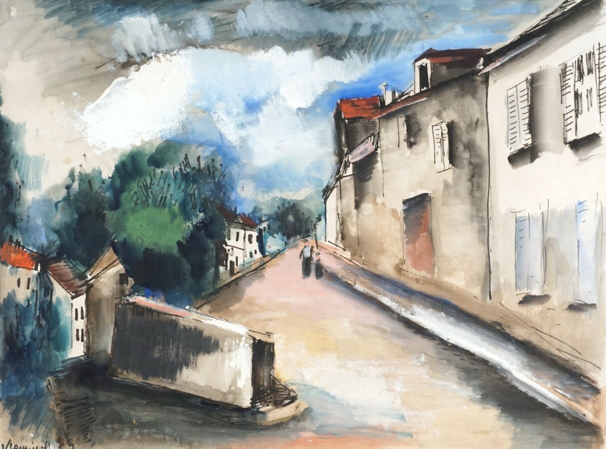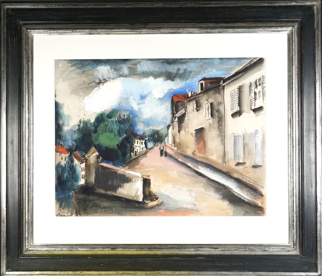 Maurice de VLAMINCK (1876-1958), "Rue de village" circa 1922 - 1924, aquarelle, gouache et encre sur papier, signée en bas à gauche, 45 x 60.5 cm (quelques légères petites rousseurs sur le côté gauche).