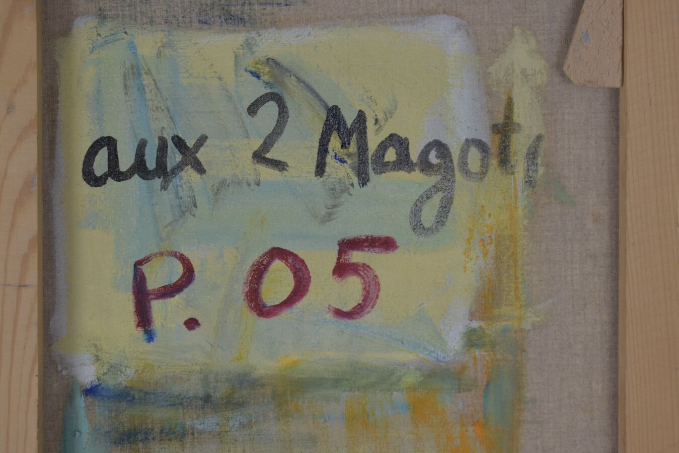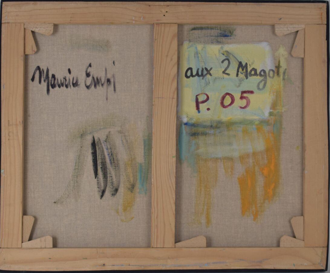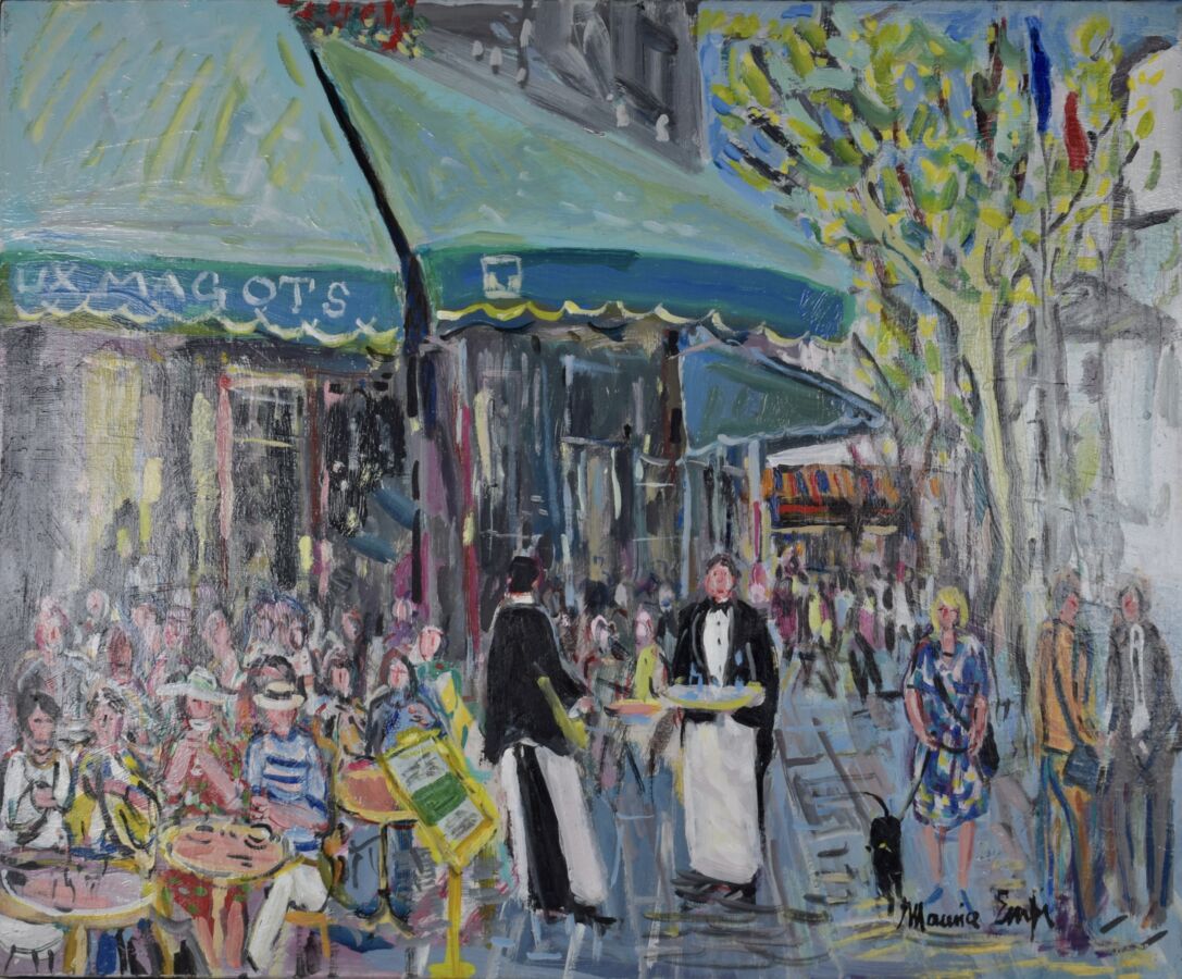 Maurice EMPI (1933), "Au deux Magots", 2012, huile sur toile, signée en bas à gauche, contresignée et titrée au dos, 50 x 61 cm.