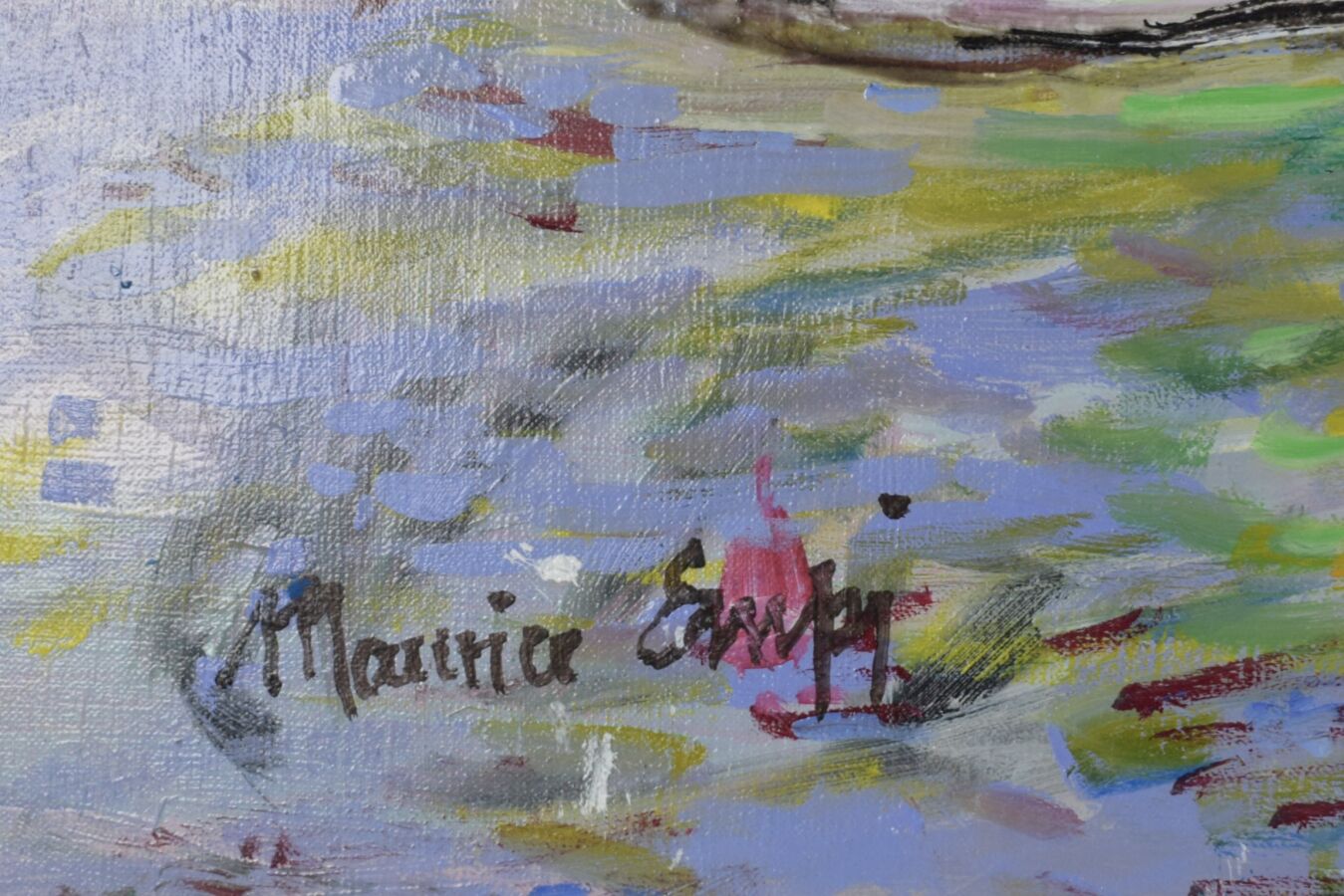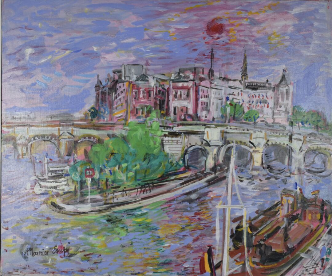 Maurice EMPI (1933), "Le Vert Galant soleil rouge", 2013, huile sur toile, signée en bas à gauche, contresignée et titrée au dos, 46 x 55,5 cm.