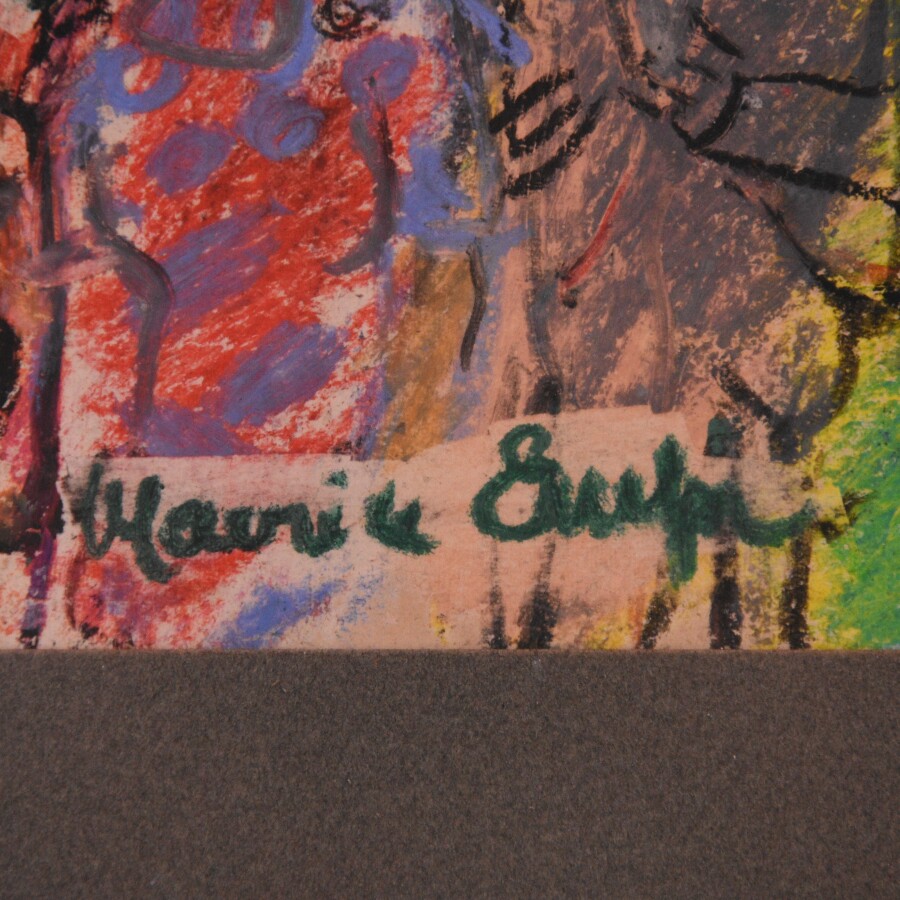 Maurice EMPI (1933), "Les courses", dessin au pastel et gouache, signé en bas à droite, 23 x 31 cm.