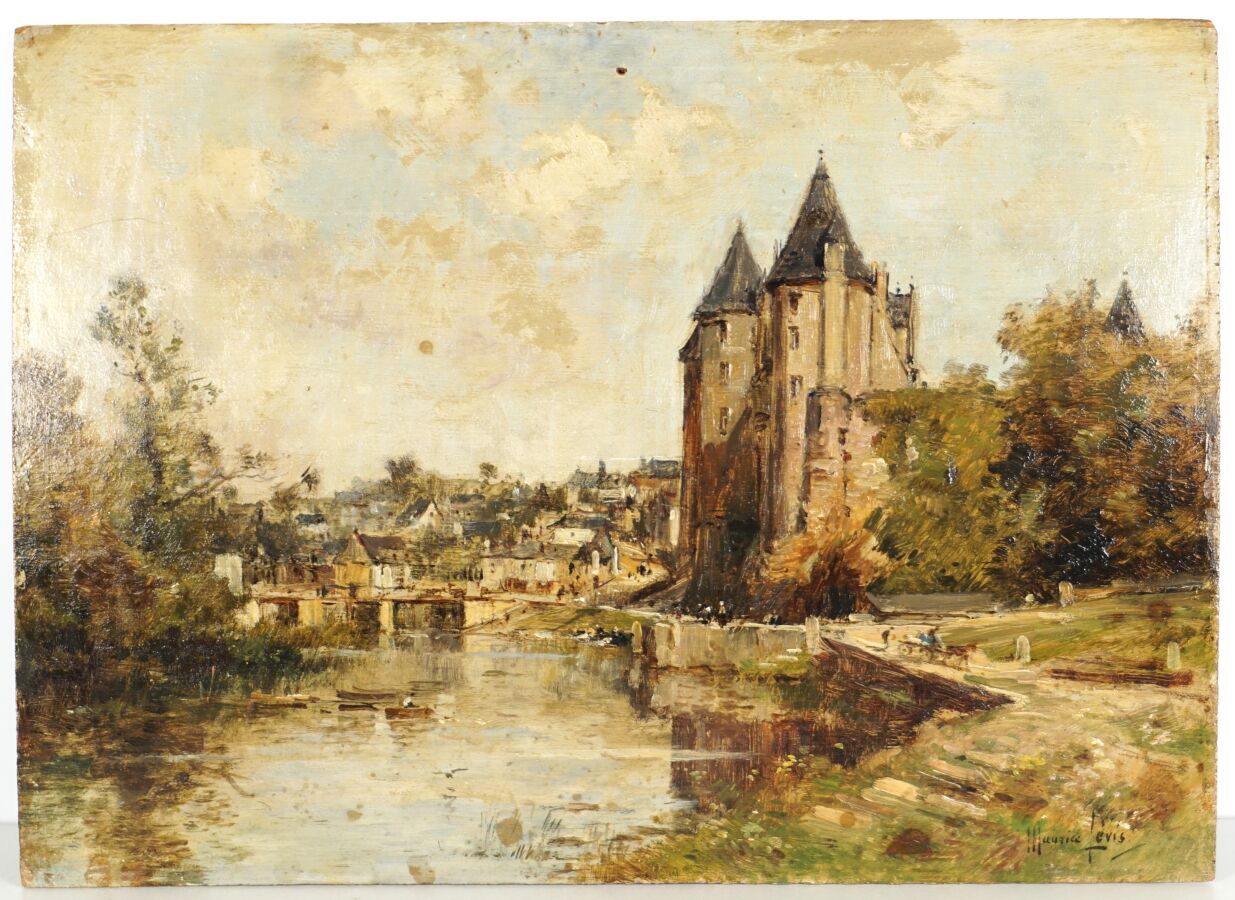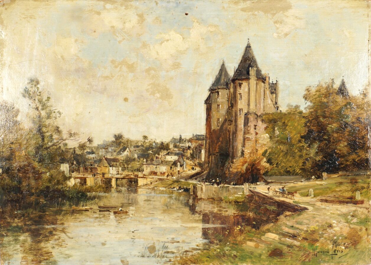 Maurice LÉVIS (1860-1940), "Le château de Josselin", huile sur toile signée en bas à droite, 23.5 x 33 cm (repeint, manque en haut).