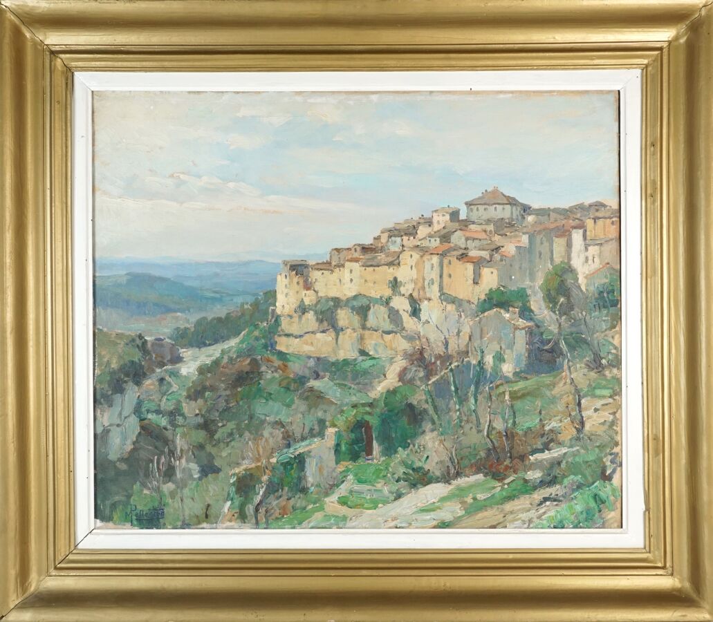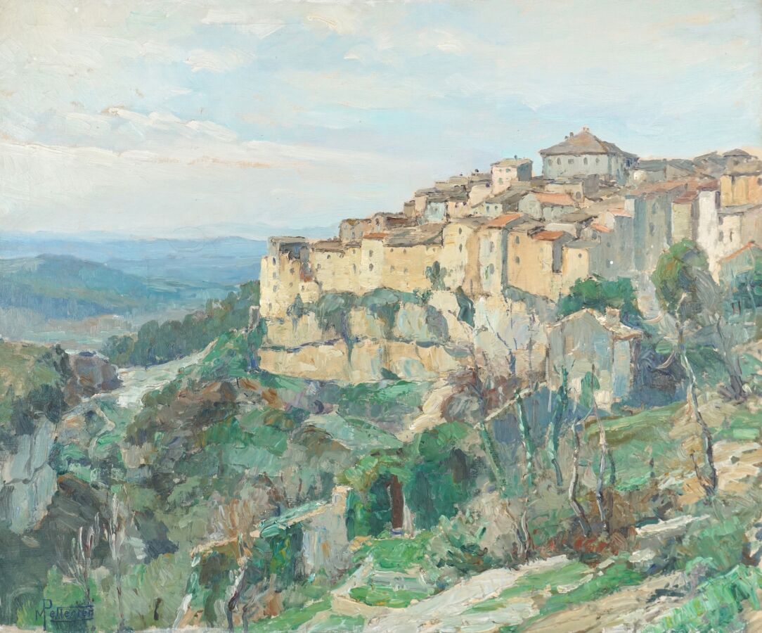 Maurice PELLERIER (1875-1962), "Vue du sud-est de la France", huile sur toile, signée en bas à gauche, 54 x 65 cm.