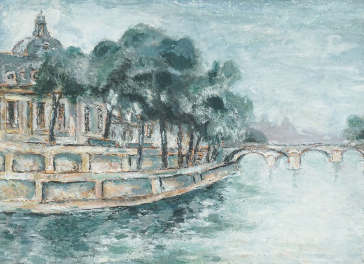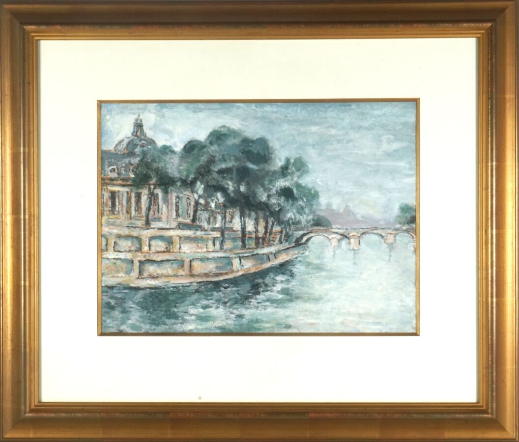 Max JACOB (1876-1944), "La Seine", gouache sur papier, signée en bas à gauche, 27 x 37 cm (à vue).