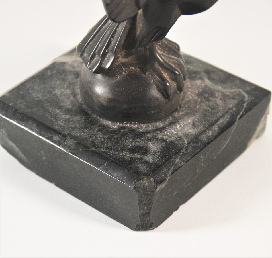 Max LE VERRIER (1891-1973), "Bouchon de radiateur Condor", sujet en bronze à patine brune, signé à la base, socle en marbre accidenté, H. 17 cm.