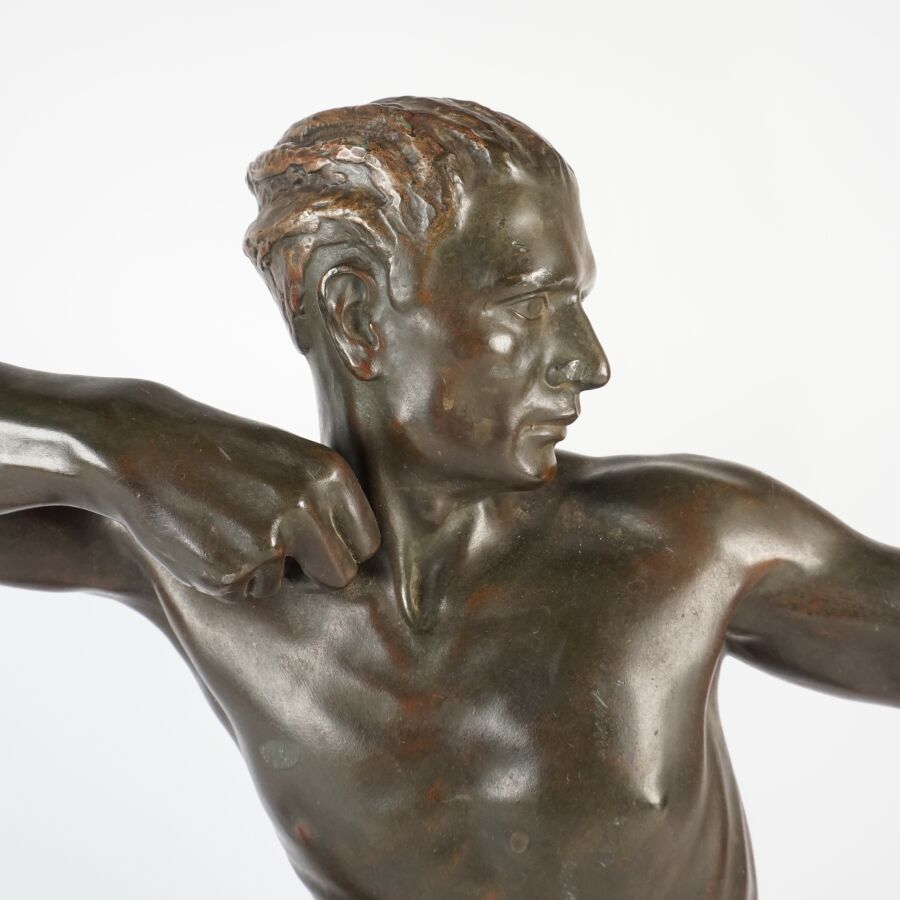 Max LE VERRIER (1891-1973),"Tir à l'arc", sculpture en régule à patine bronze, signée du cachet d'atelier, Dim. 43 x 55 cm (petites usures et griffures à la patine, arc à revisser).