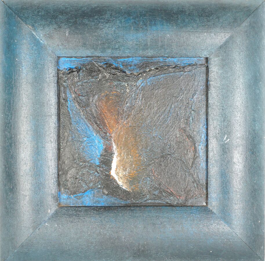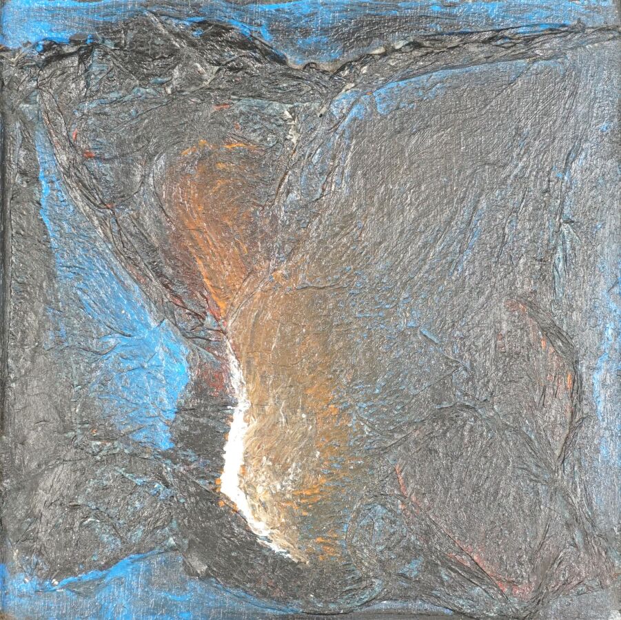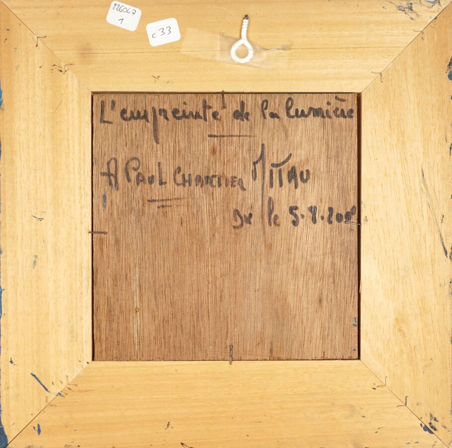 Max MITAU (1950), "L'empreinte de la lumière" 2000, huile sur panneau signée et datée au dos, 18 x 18 cm.