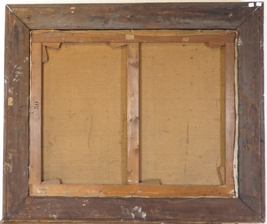 Max SILBERT (1871-?), "Cour de ferme", huile sur toile, signée en bas à droite, 74 x 92 cm (quelques trous en bordure de toile, accidents au cadre).