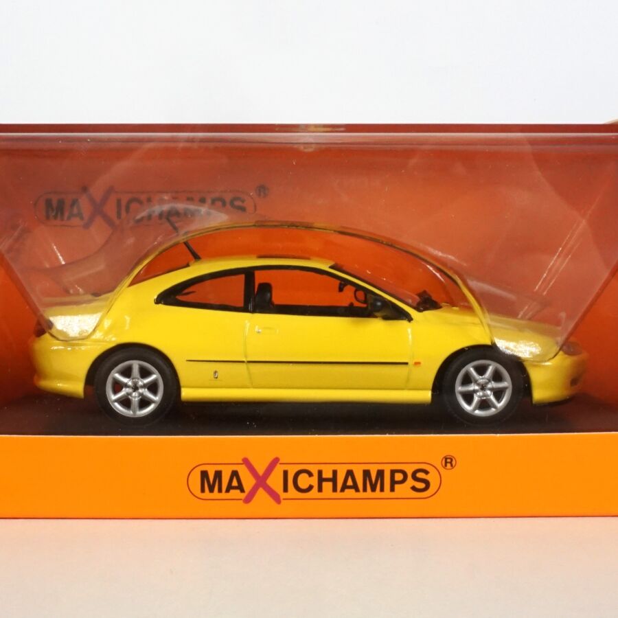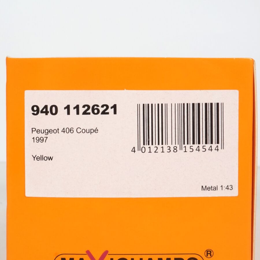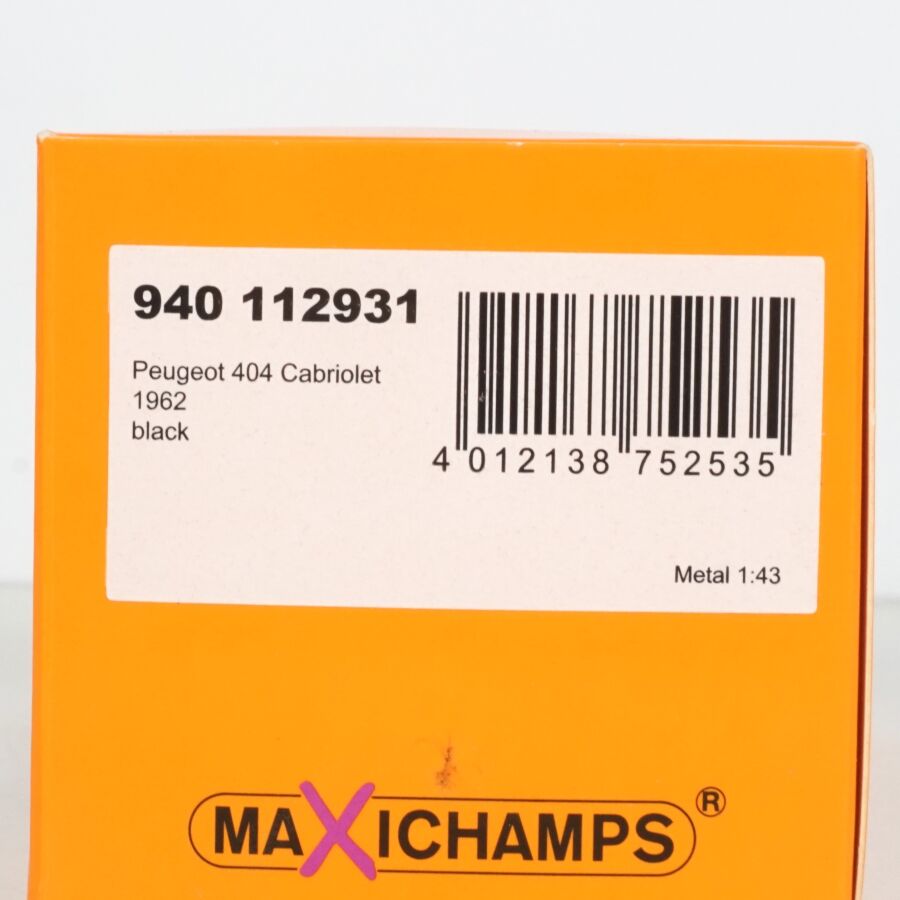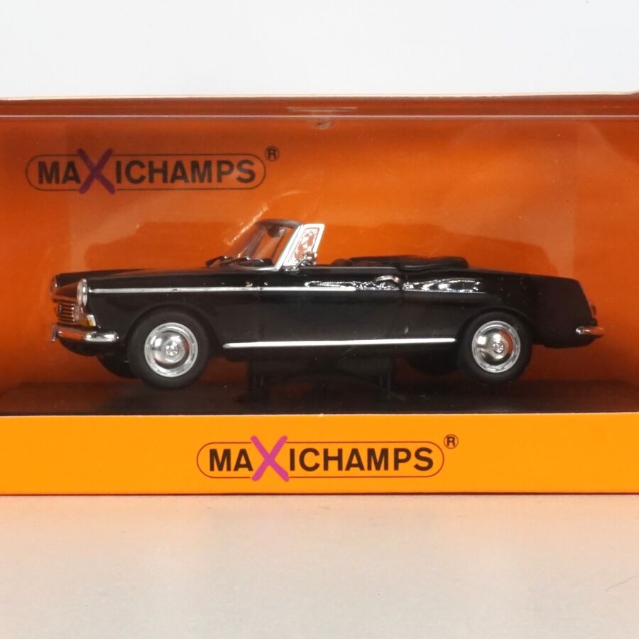 MAXICHAMPS : Ensemble de 2 véhicules, échelle 1/43ème, comprenant (1) Peugeot 406 coupé 1997 jaune et (1) Peugeot 404 Cabriolet 1962 noire, présentés en boîte d'origine.