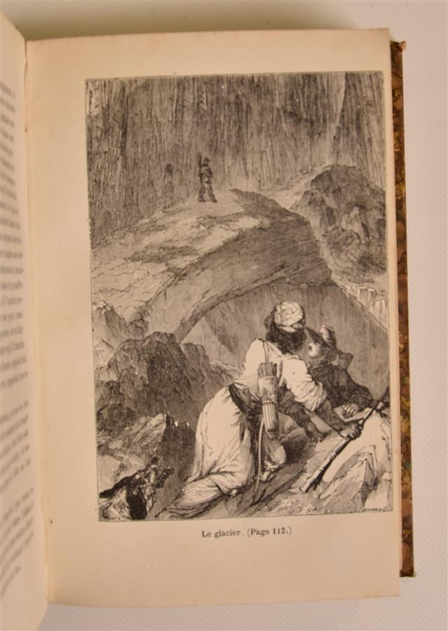 MAYNE-REID (Capitaine) - Ensemble de 2 volumes : Le chasseur de plantes - Paris ; L. Hachette et Cie, 1871 - 1 volume In-12° - 12 illustrations hors-texte dont frontispice en noir - Reliure de l'époque demi-chagrin havane - Dos à nerfs orné à froid et titré or, monogramme doré en bas de dos : H. J. - Les grimpeurs de rochers. Suite du chasseur des plantes - Paris ; L. Hachette et Cie, 1869 - 1 volume In-12° - Frontispice et illustrations hors-texte en noir - Reliure de l'époque demi-chagrin havane (coins usés) - Dos à nerfs orné à froid et titré or, monogramme doré en bas de dos : H. J. - Bons exemplaires.