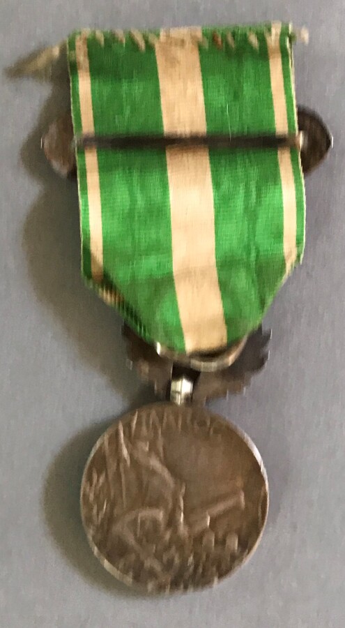 MEDAILLE DU MAROC 1907-1912 (1910), en argent, fabrication de la Monnaie de Paris, jeton de 30 mm, barrette en argent de style oriental " Maroc ", ruban de 36 mm de large, TBE.
