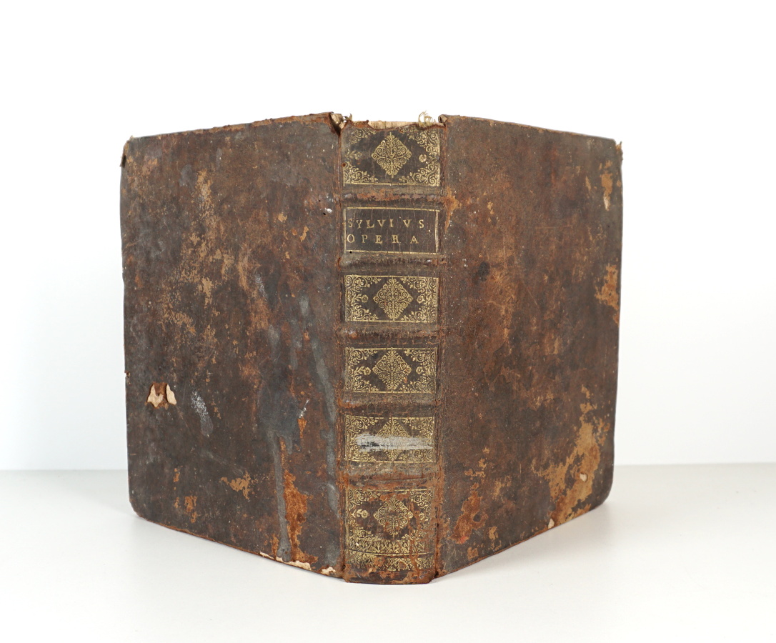 [MÉDECINE] - SYLVIUS (Franciscus) - Francisci Deleboe, Sylvvi Opera Medica tam hactenus inedita, quàm variis locis et formis edita ; nunc vero certo ordine disposita, et in unum volumen redacta, cum duplici indice [...] - Amstelodami, Apud Danielem Elsevirium et Abrahamum Wolfgang, 1679 - 1 volume In-4° - [8], 934 [26] pages - Portrait manquant - Petite galerie en marge externe des 15 premiers feuillets et trou de ver en tête d'épingle au même endroit sur quasi l'ensemble de l'ouvrage, quelques salissures - Reliure de l'époque veau brun (2 coins usés, des épidermures avec petits manques aux plats 1er mors frotté) - Dos à nerfs orné (coiffe supérieure arasée, cuir craquelé, des dédorures) - Pièce de titre maroquin brun - Tranches mouchetées de rouge - Ex-libris ancien manuscrit au titre : Martialis Plaigneau doctoris medici montpeliensis.