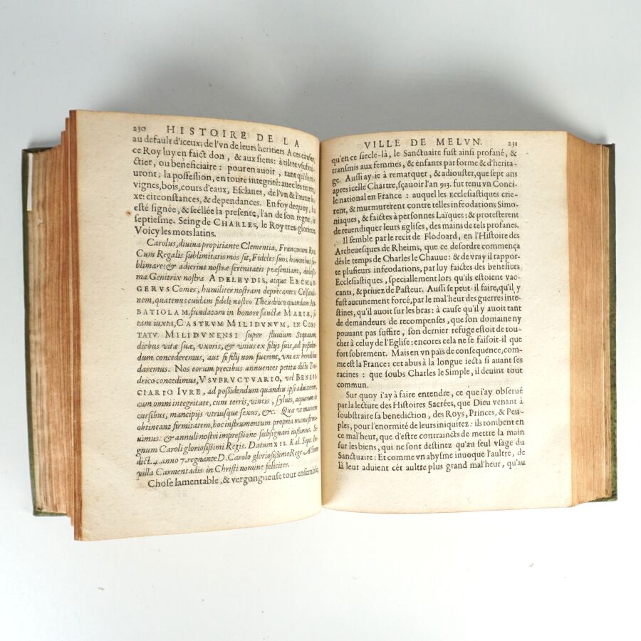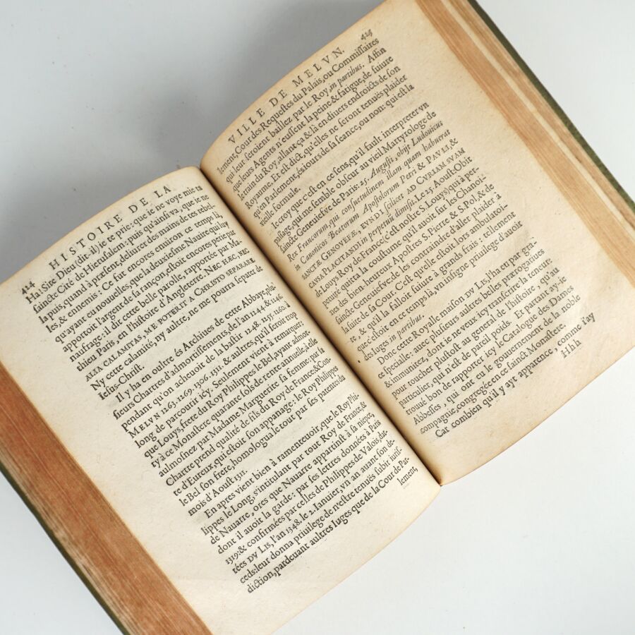 Dans cet ouvrage touffu recueilli de diverses chroniques, et chartes manuscrites pour lequel Roulliard travailla près de vingt ans, on trouve d'intéressants matériaux pour l'histoire de Melun et une foule d'anecdotes curieuses. Qqs petites usures, papier un peu bruni.