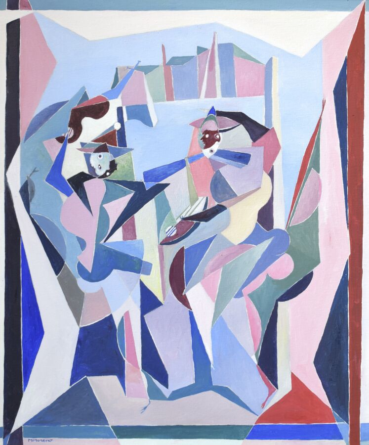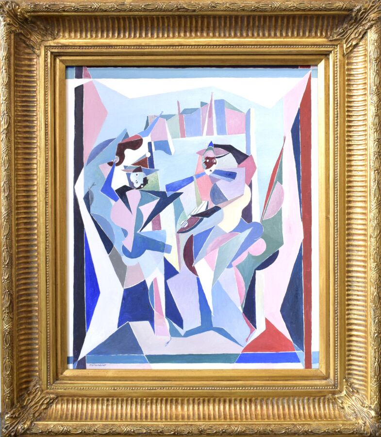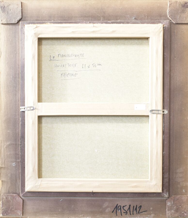 Michel MORENO (1945), "Le mandoliniste", vers 1980, huile sur toile, signé en bas gauche, 61 x 50 cm.