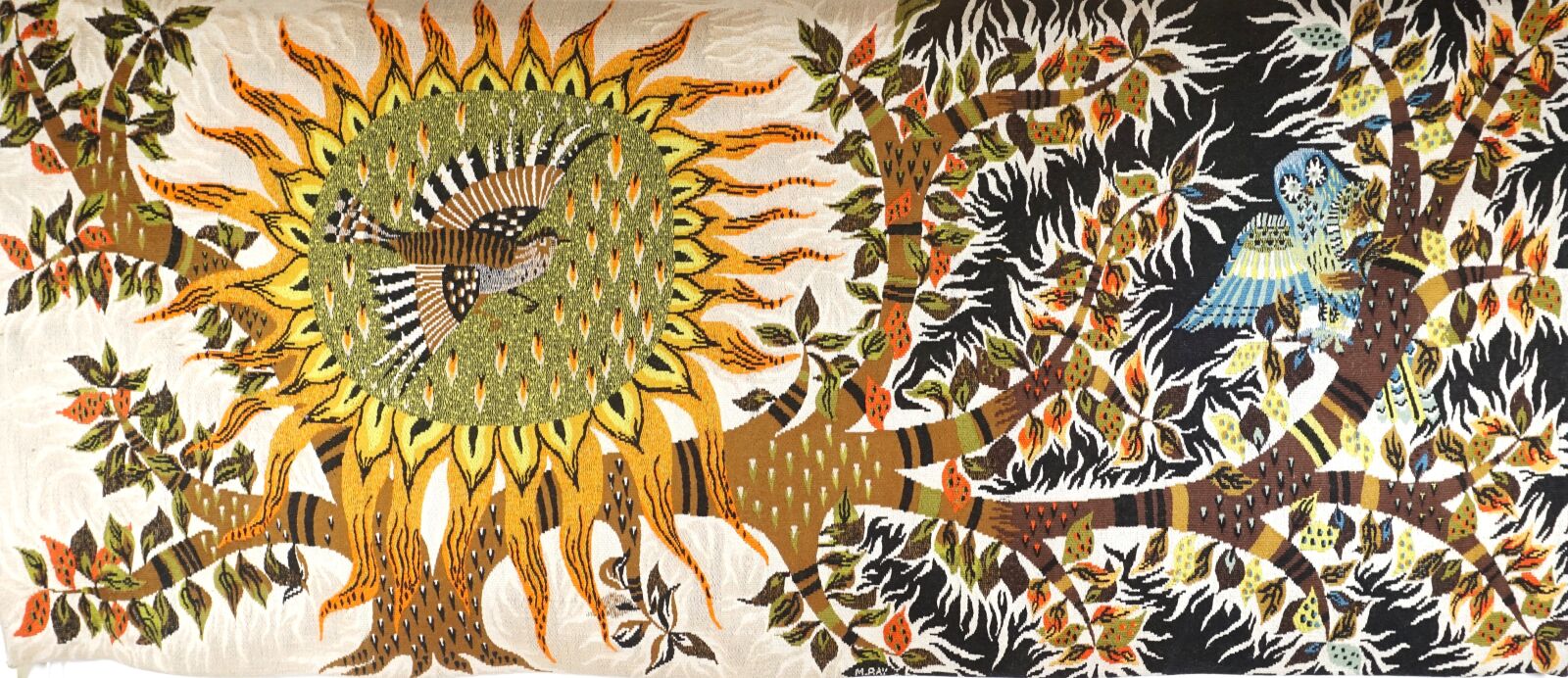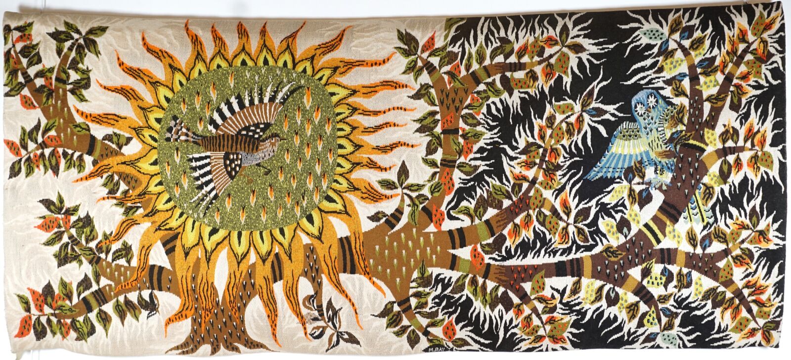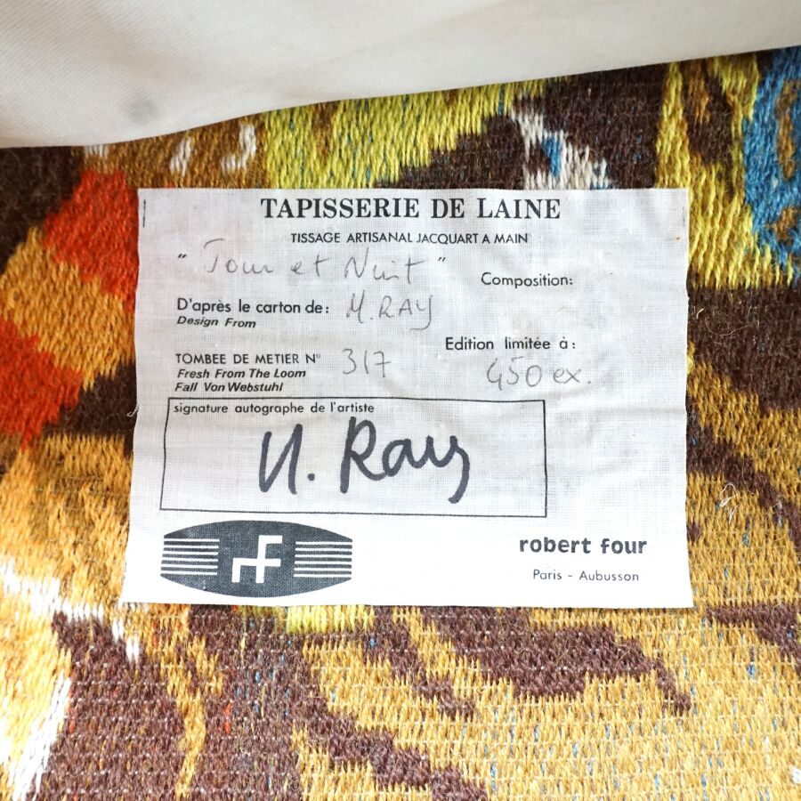 Michèle RAY (1933) - Atelier Robert FOUR (AUBUSSON) : "Jour et nuit", tapisserie en laine polychrome, d'après le carton de l'artiste, tirage à 450 exemplaires, tombée de métier n° 317, Dim. 108 x 243 cm.