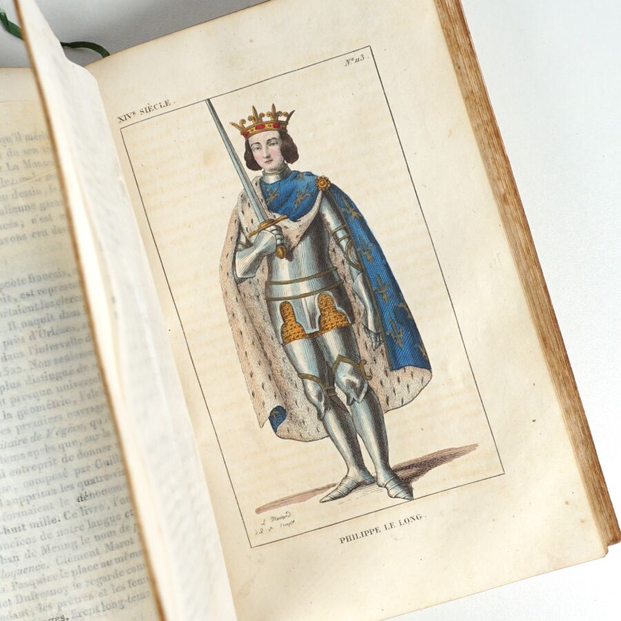 Ouvrage illustré de 156 pl. (sur 160) gravées par A. Massard et Laffose, coloriées à la main, certaines avec rehauts d'or et d'argent, d'après les dessins originaux du recueil Gaignière conservé au Cabinet des Estampes. (Colas, 722 ; Vinet, 2262).