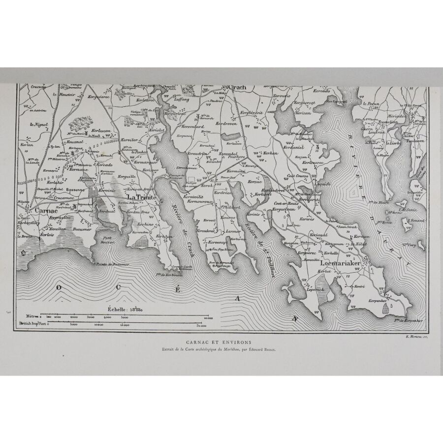 Premières fouilles faites à Carnac par James Miln, archéologue écossais qui découvrit le site de Carnac en 1873. Il fonda le Musée de Carnac, devenu Musée de la préhistoire James Miln-Zacharie Le Rouzic (du nom de son assistant), et fut également vice-président de la Société philomatique du Morbihan (1880), et de la Société française d'archéologie. Très bon exemplaire. (Très rares petites rousseurs.)