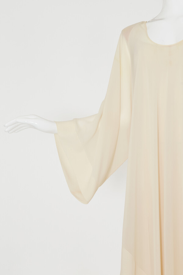 Tunique en pointe en georgette blanche avec surpiqûres, encolure décolletée, grandes manches.