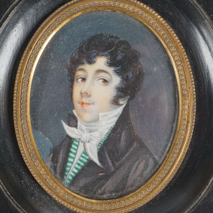 Miniature peinte figurant un portrait d'homme en buste, 19ème siècle, 7 x 5 cm.