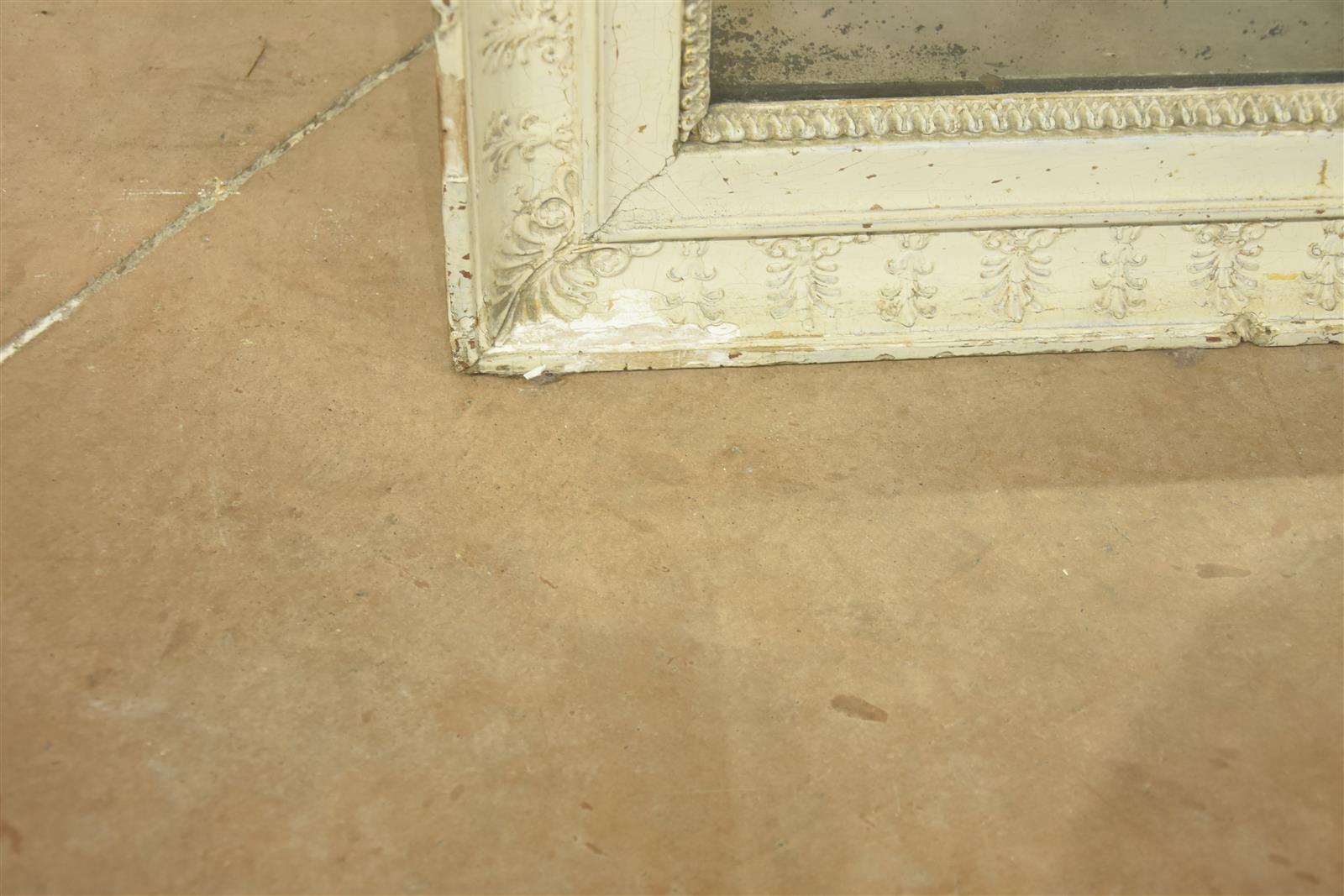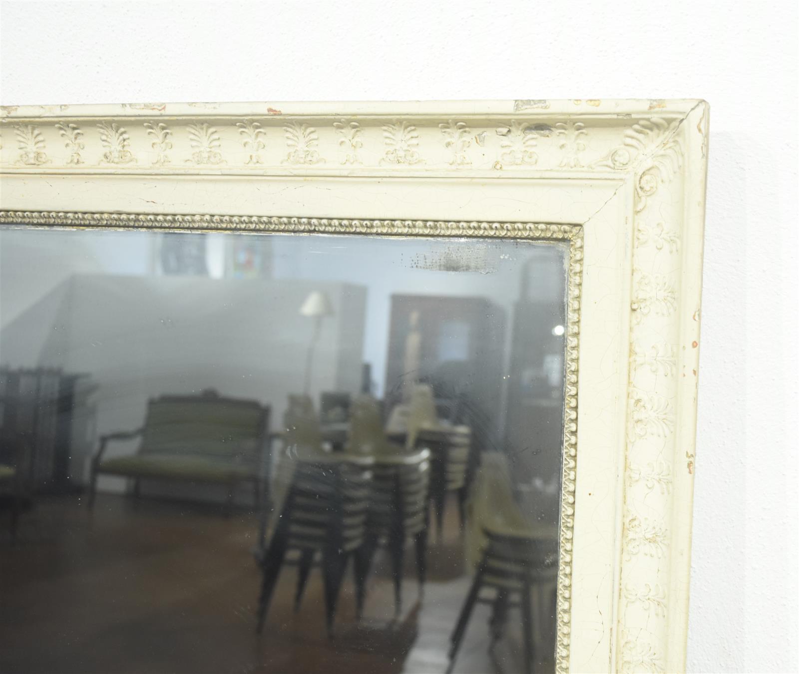 Miroir en bois relaqué blanc et sculpté à décor de palmettes, anciennement doré, glace au mercure en deux panneaux, dos parqueté, première moitié du 19e siècle, 162 x 101 cm