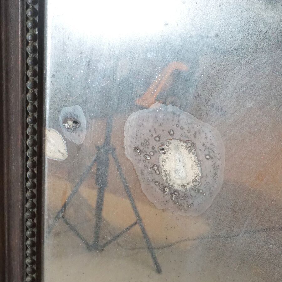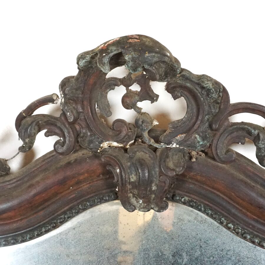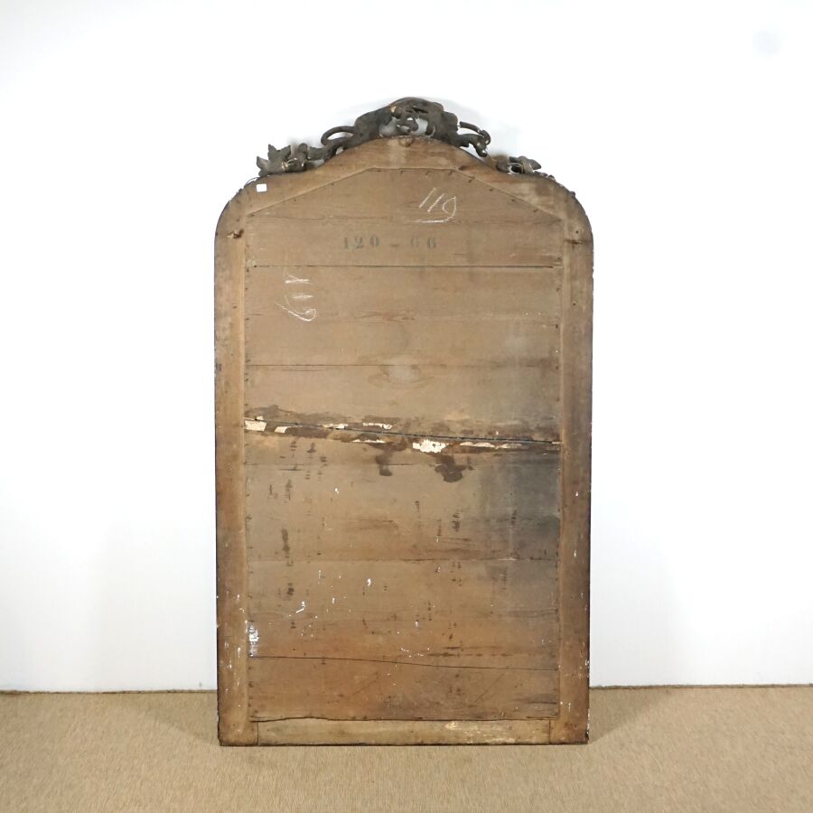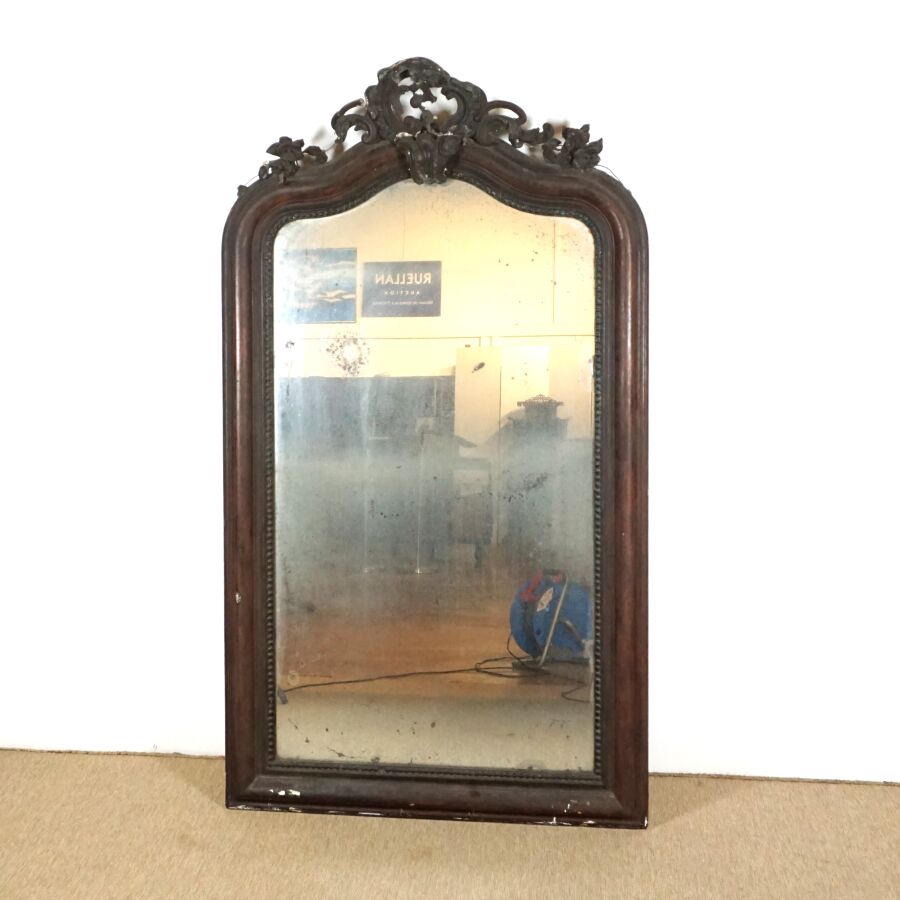 Miroir en bois sculpté à décor d'une frise perlée et de fleurs, 154 x 87 cm (accidents, restaurations).