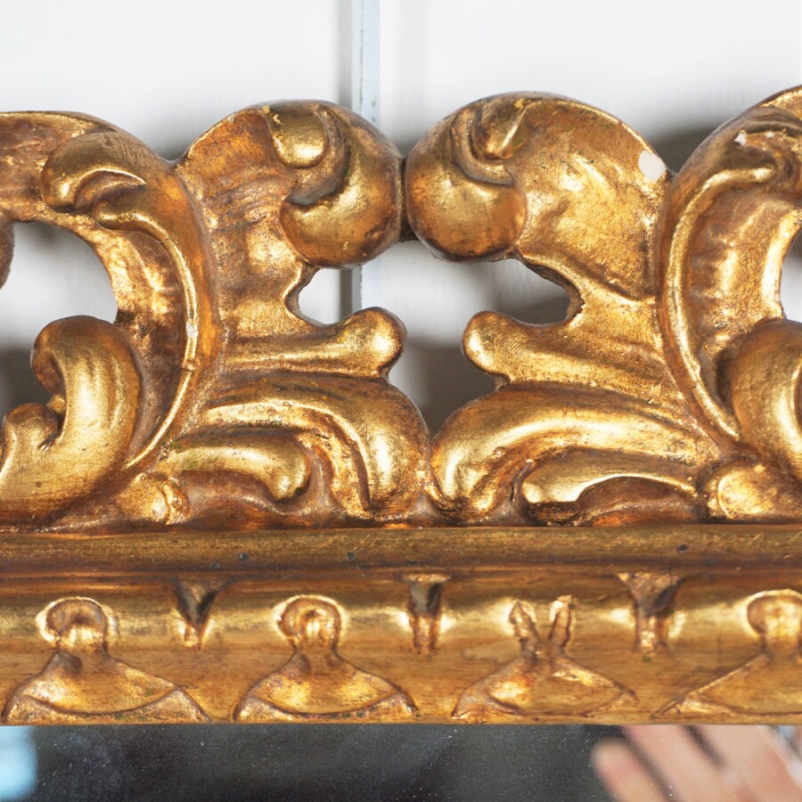 Miroir rectangulaire en bois doré, les bordures à décor de rinceaux feuillagés, travail italien, 71 x 61 cm.