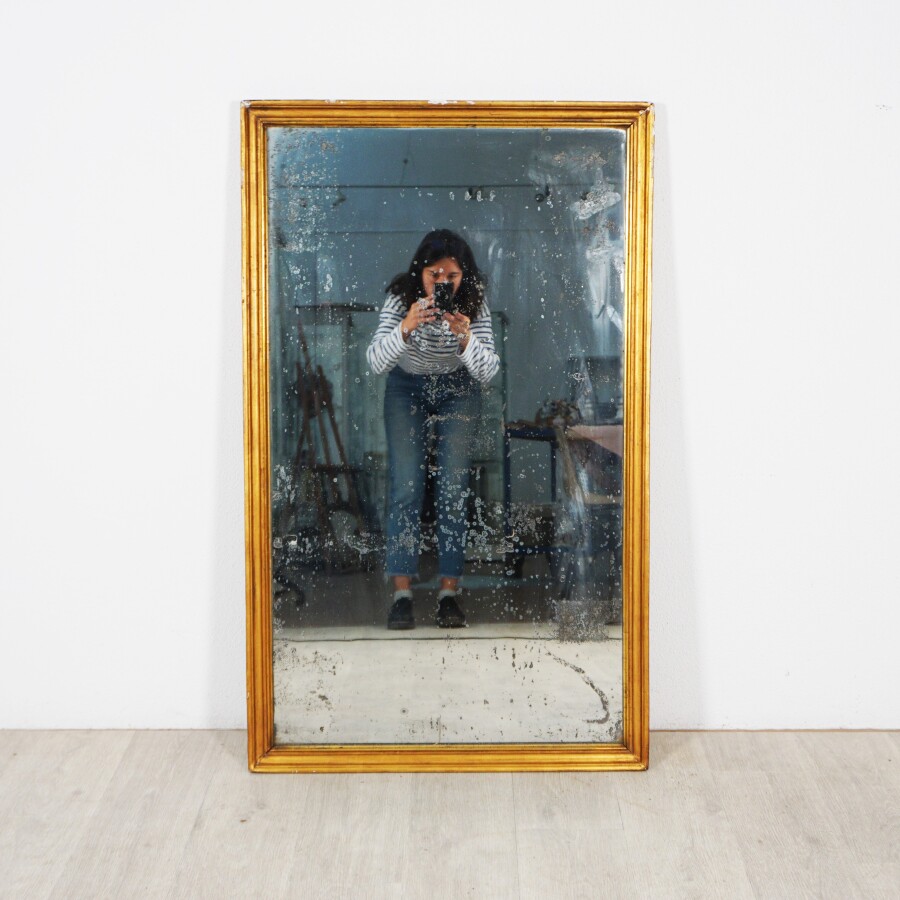 Miroir rectangulaire en bois et stuc doré, glace au mercure, 67 x 110 cm (accidents).