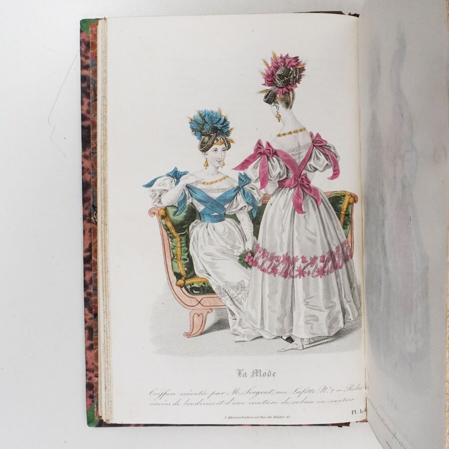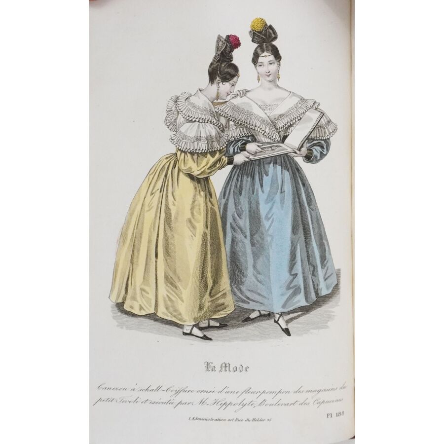 [MODE (La)]. La Mode, revue des modes, galerie de moeurs, album des salons. Paris, s. n., octobre 1829 - avril 1834. 6 volumes in-8, demi-basane, dos lisse orné (reliure de l'époque).