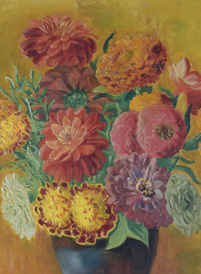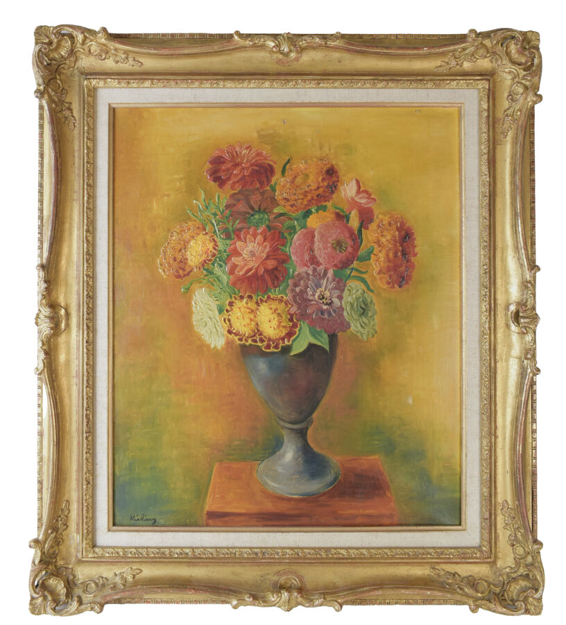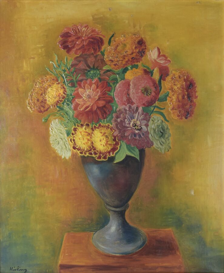 Moïse KISLING (1891-1953) "Fleurs", circa 1944, huile sur toile, signée en bas à gauche, 56 x 46 cm, (accident).