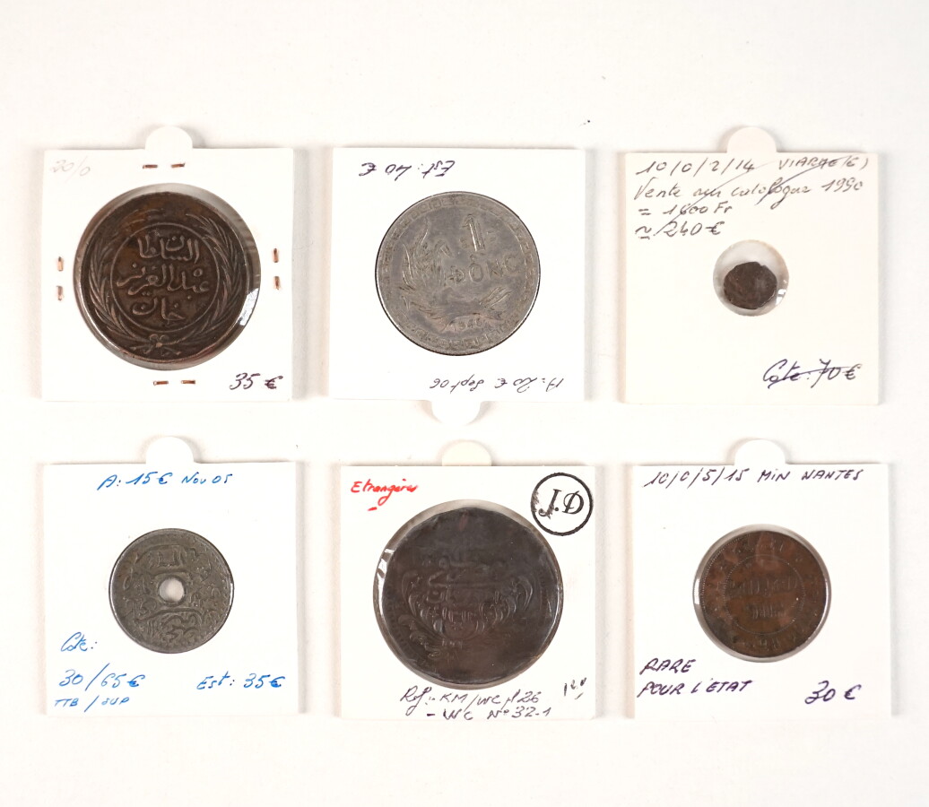 - Tunisie : 8 Kharoubj 1864 et 20 centimes 1945.