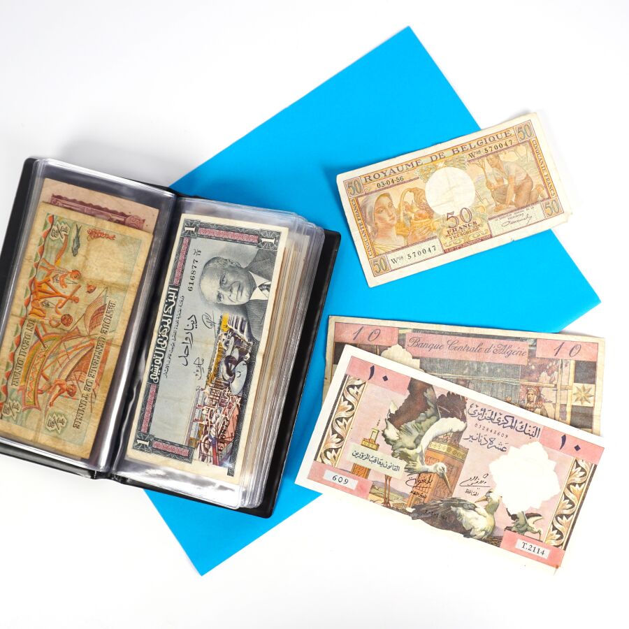 MONDE : Lot de 31 billets de banque dont France, Australie, Allemagne, Norvège, Algérie (5 Dinars 1-1-1964 SUP), Belgique, Tchécoslovaquie, Espagne, Maroc (10 Dirhams 1965 SUP), Tunisie, Turquie, USA.