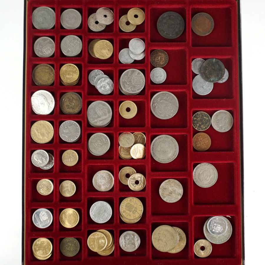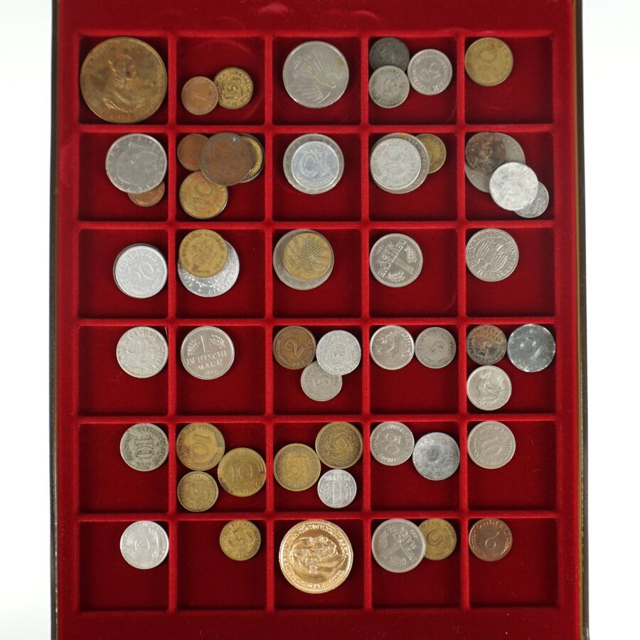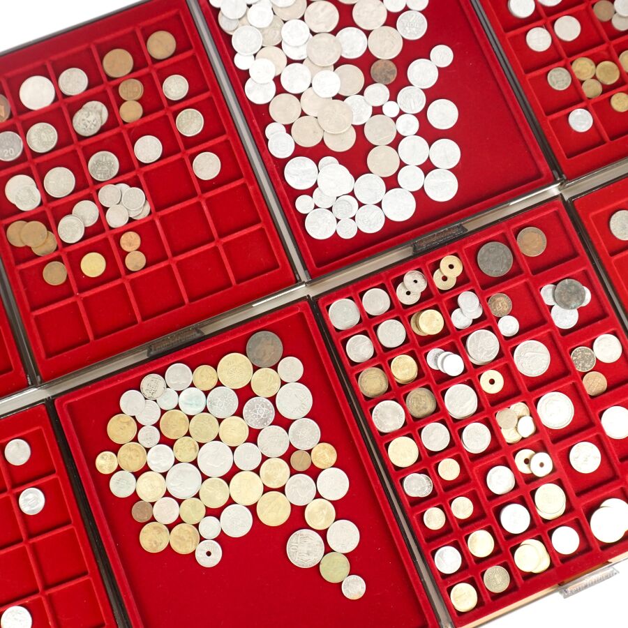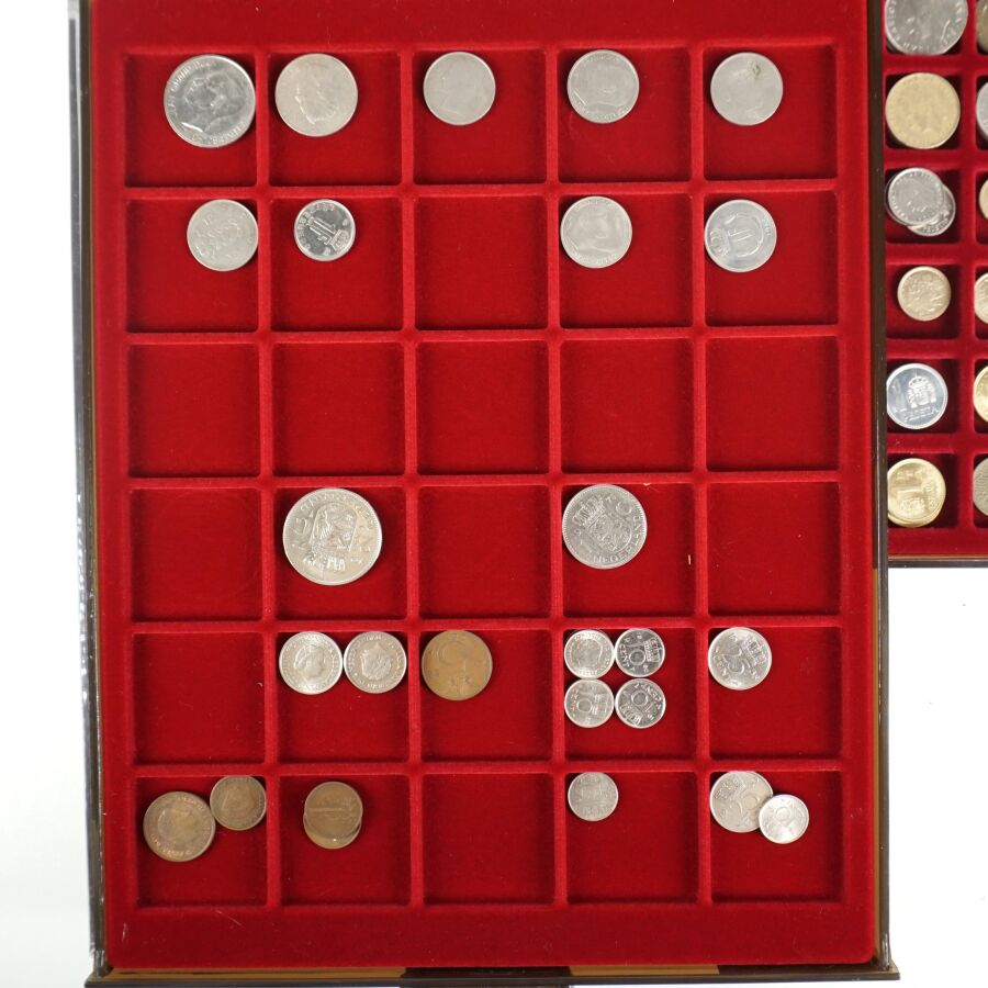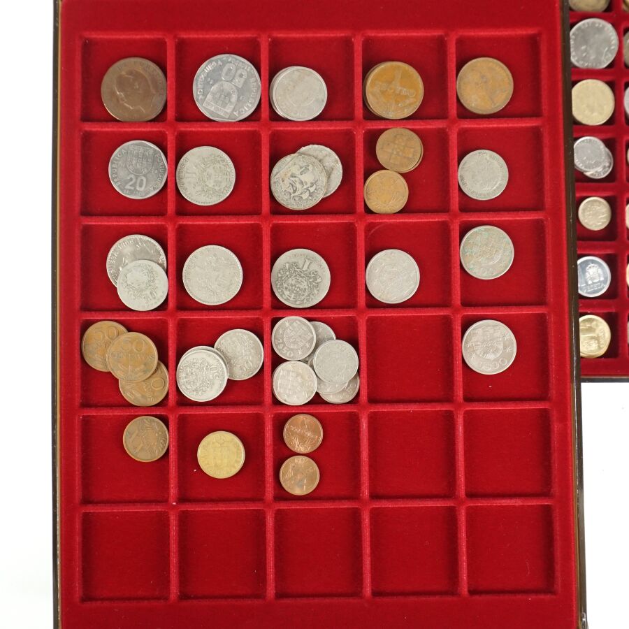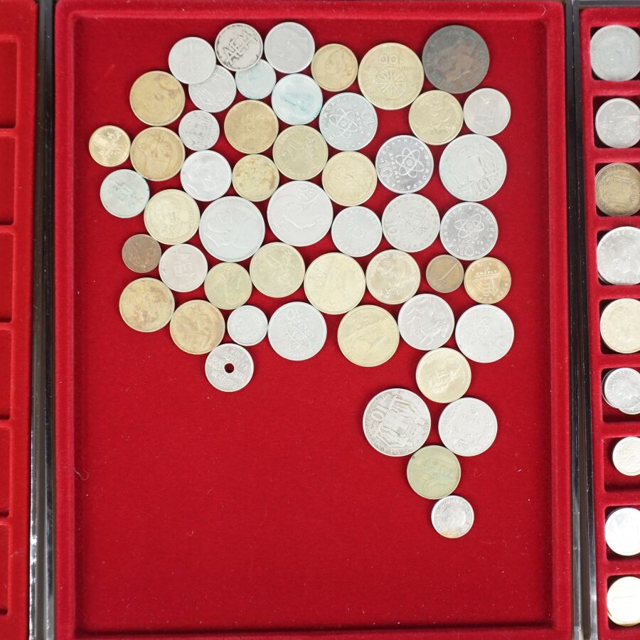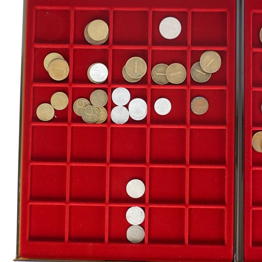 MONDE : Lot de 8 plateaux de monnaies comprenant : Pologne, Portugal, Autriche, Allemagne, Pays-Bas, Grèce, Espagne, Belgique.